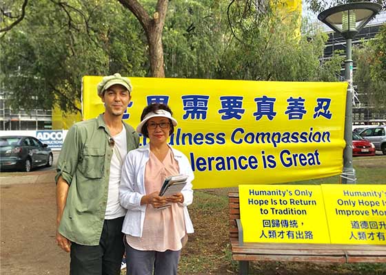 澳洲布里斯本真相点 民众与法轮大法结缘(图)