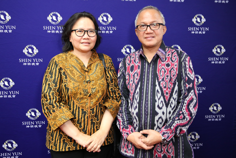 图11:印度尼西亚经济贸易代表处观光暨交通部主任亚提拉(Adila Chaerman)夫妇四月十三日午间观赏神韵演出后表达高度赞佩。