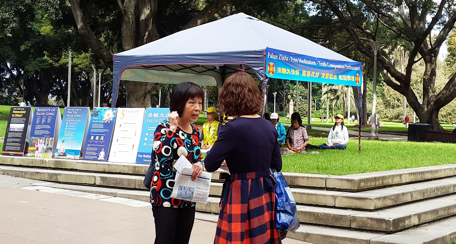 ![]() 图5:法轮功学员(左)正在和香港女士交谈 |