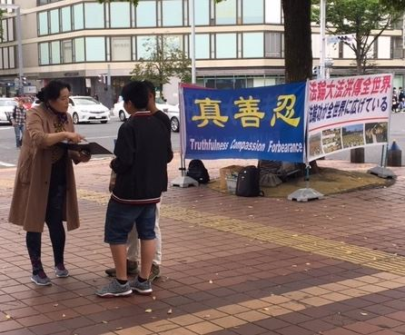 这次活动中,感到在日本的越南年轻人非常的多,他们人很善良,很多人都接真相资料,带去的越语法轮功资料都不够了。有的越南年轻人在听了真相后,在声援举报江泽民的签名纸上签了名。