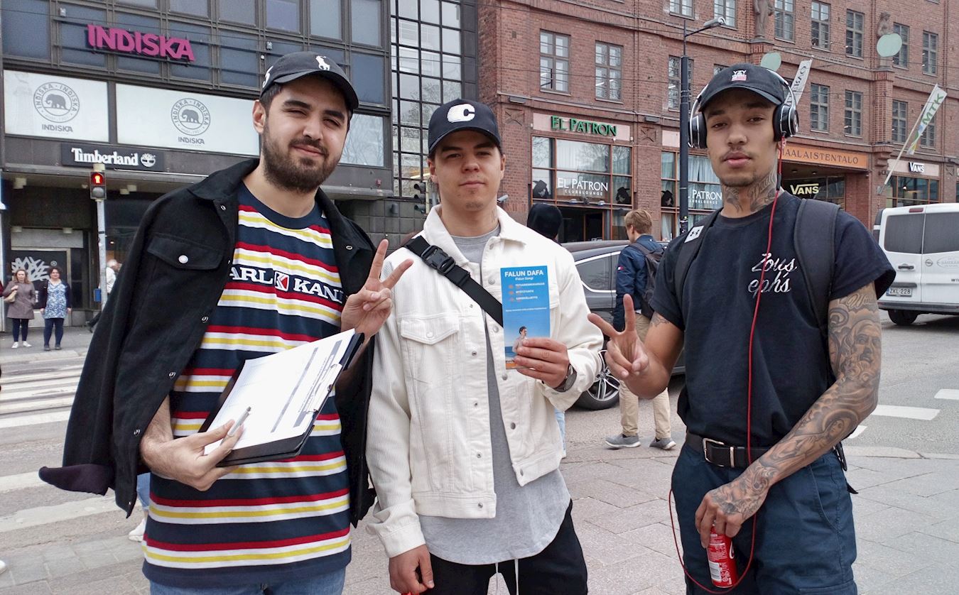 ![]() 图3~5:赫尔辛基市中心市民聆听真相,并踊跃签名支持制止迫害。 |