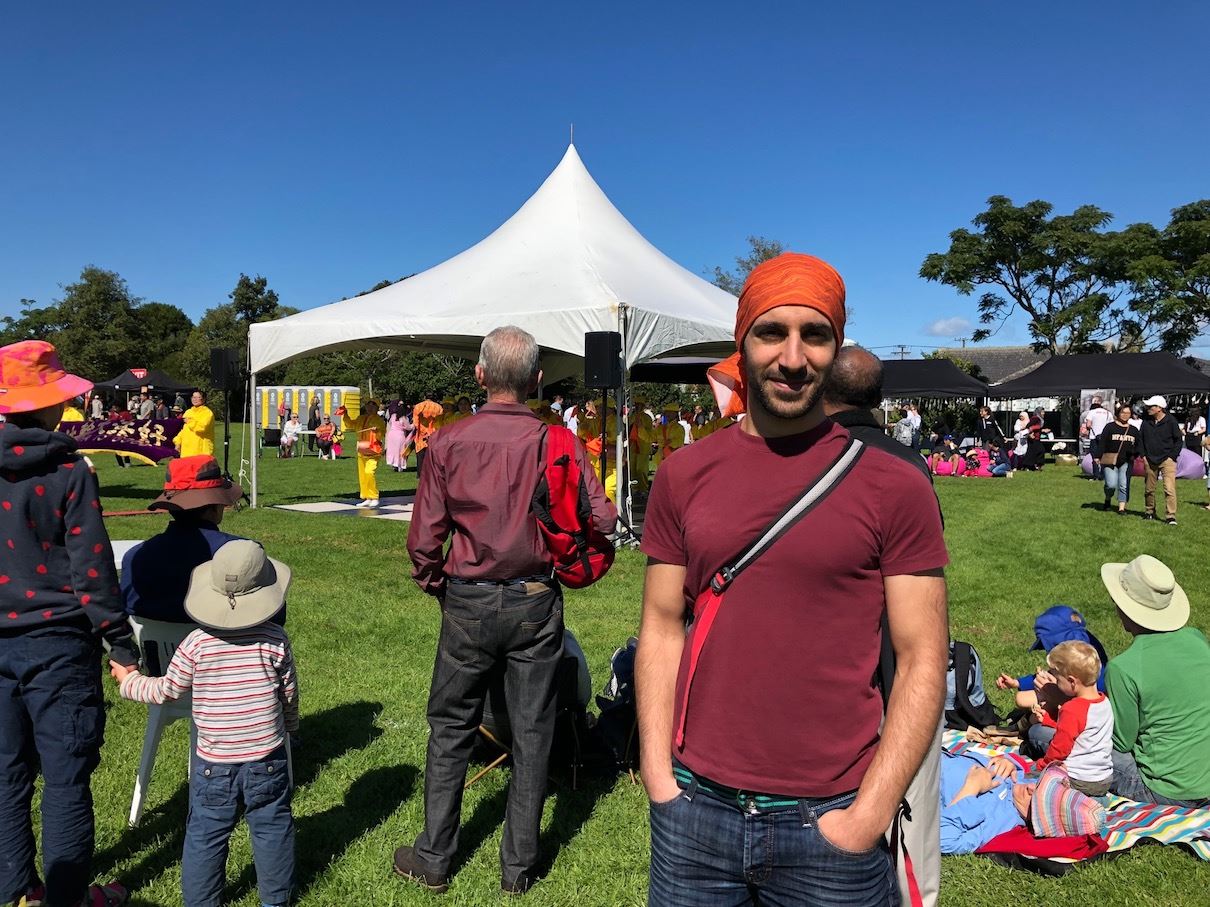 法轮功学员们的功法展示是其中一个舞台开场的第一个节目,立即吸引了人们的目光。杰德戴维斯(Jade Davis)是一名市政府的工作人员,社区项目负责人,他在现场不停拍照,他表示虽然是第一次见到法轮功,但就是这个(能量)场,这个平和舒缓的动作,让他不由自主地走过来看。他说他以前一直专注健身房和户外运动,可是最近特别想找一些能让他意念集中(类似冥想)的东西,所以他很有兴趣了解法轮功,希望可以学习。他也想了解中共对法轮功镇压的真相,并答应在他的社交媒体分享他的收获。