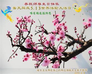 吉林省长春一大法弟子及四位明真相的家人恭祝师尊生日快乐!湖南湘潭明真相世人庆祝世界法轮大法日!恭祝李老师生日快乐!