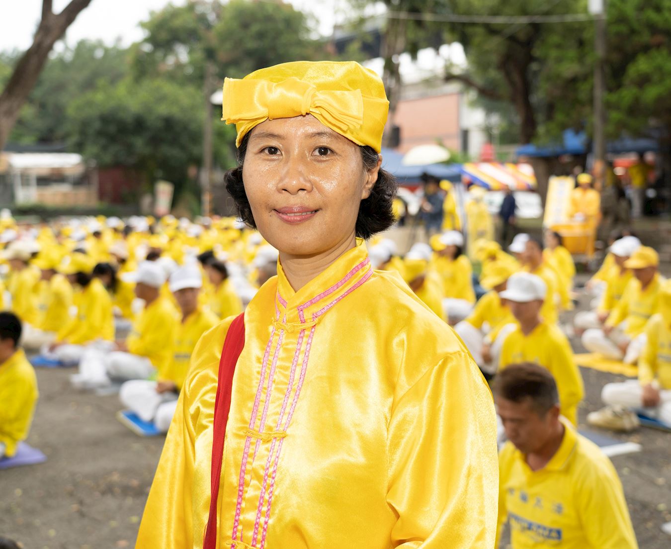 图7:常常参加腰鼓队弘法的淑华,修炼后,腰酸痊愈,气喘也好了,皮肤变得光滑亮丽。
