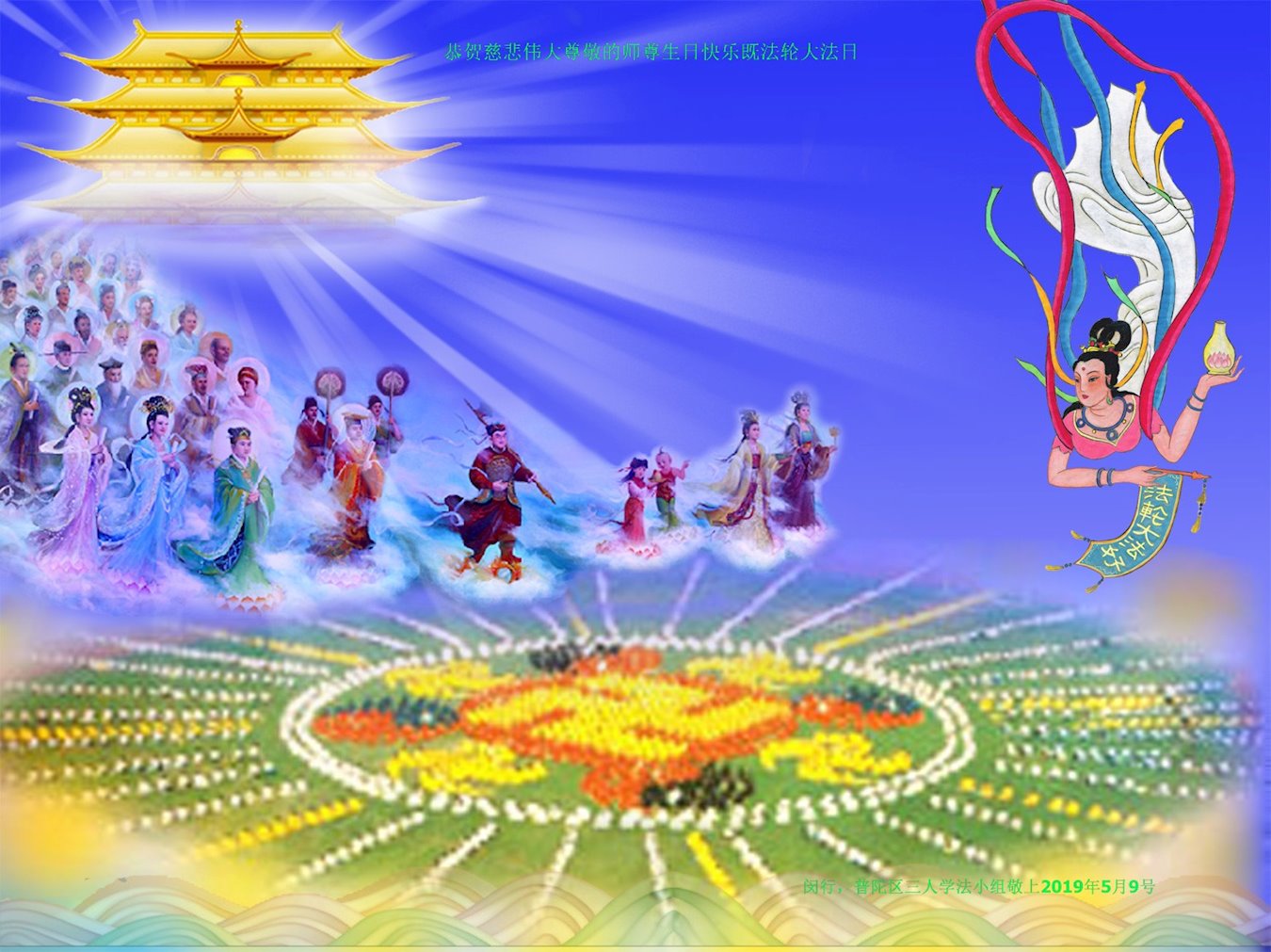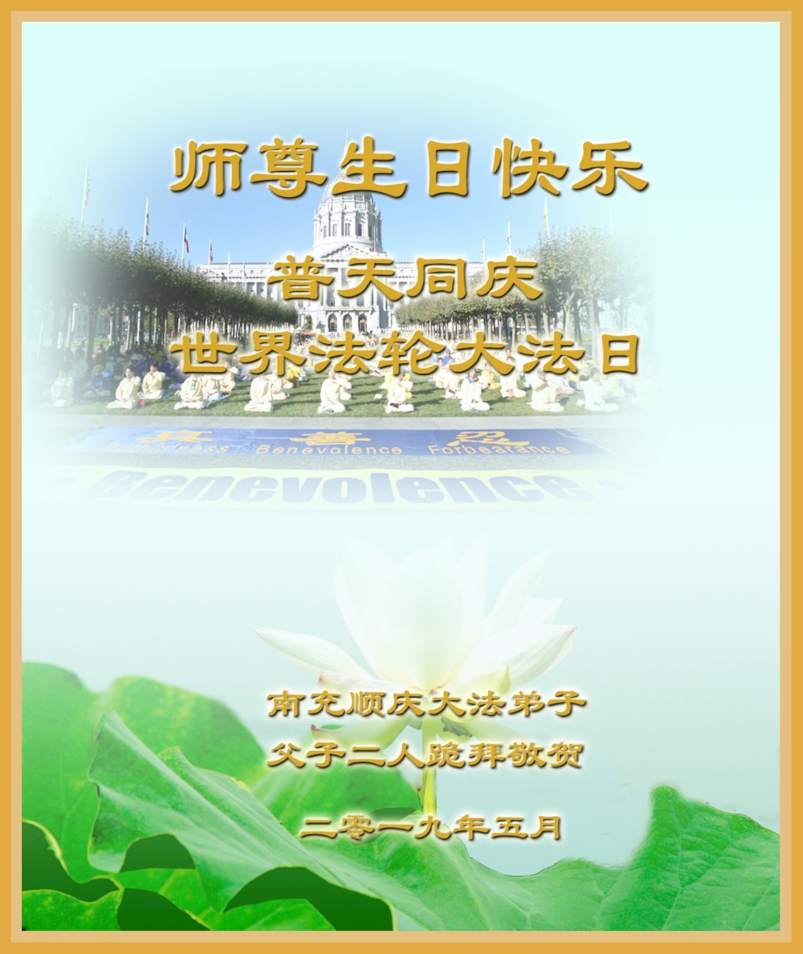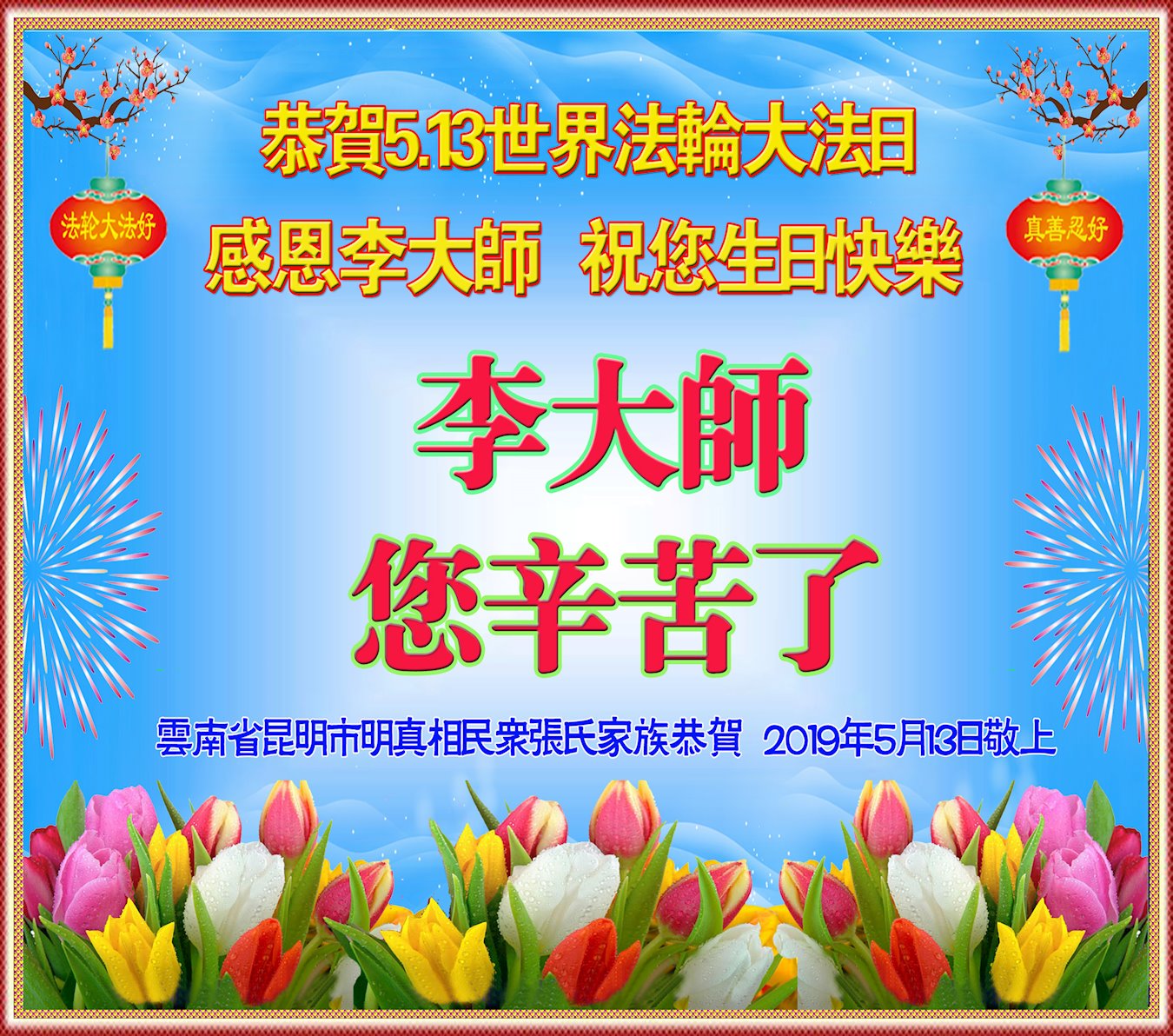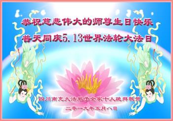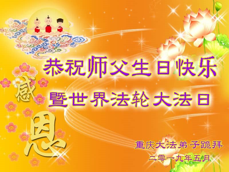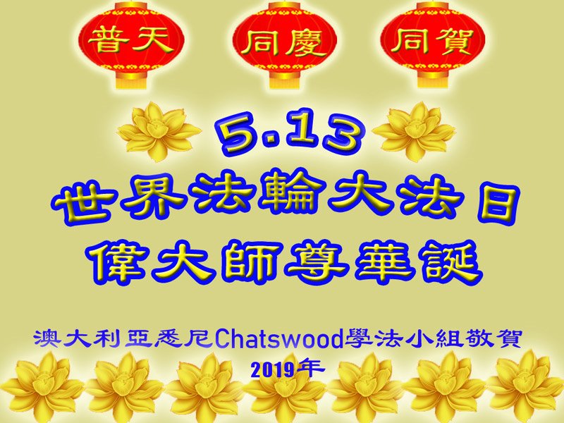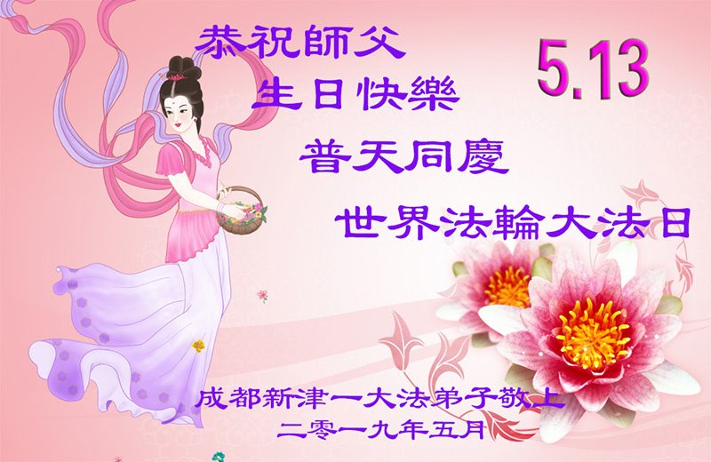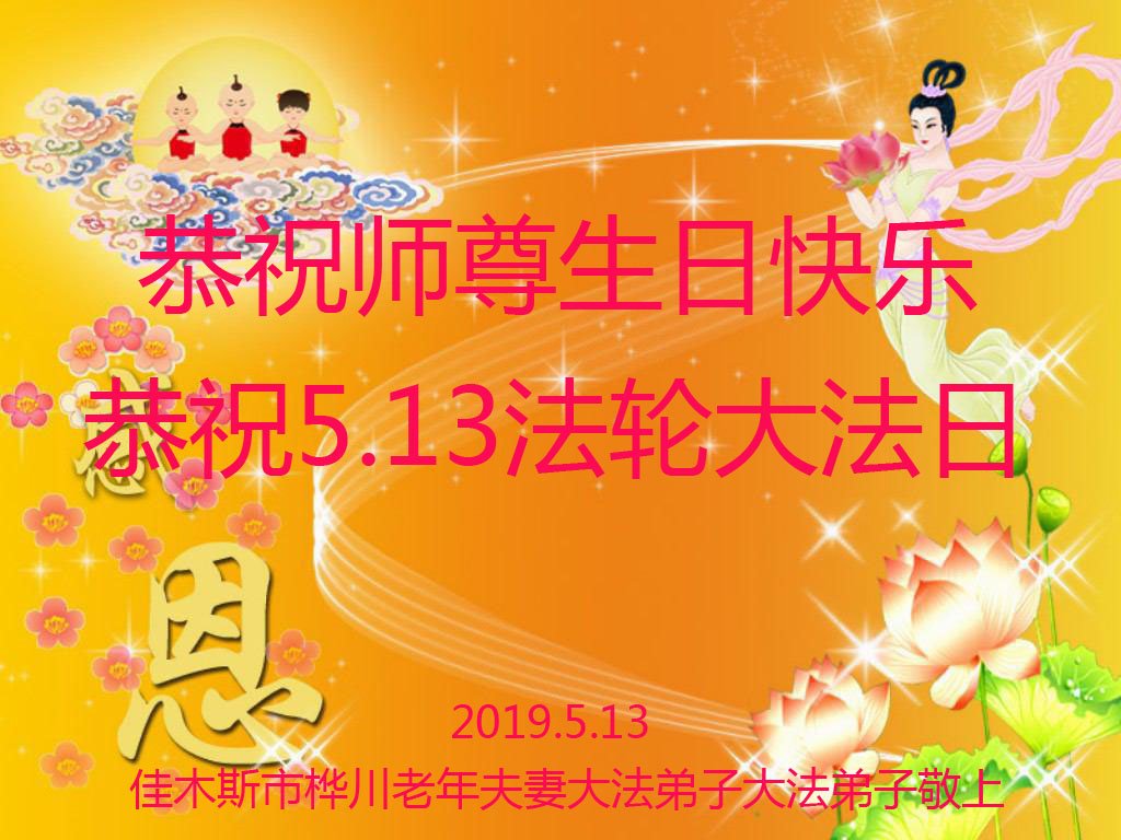 【明慧网二零一九年五月十二日】二十七年前的五月十三日,李洪志师父将法轮大法公开传世,“真、善、忍”的法理为全球五大洲不同族裔的上亿修炼者带来新生,也为他们的家庭和身处的社会带来祥和与美好。五月十三日也是师父的生日,每年此季,世界各地的法轮功学员都会举办庆典向师尊恭祝华诞。