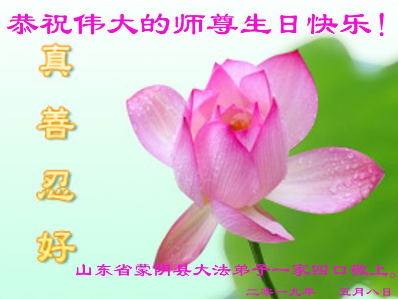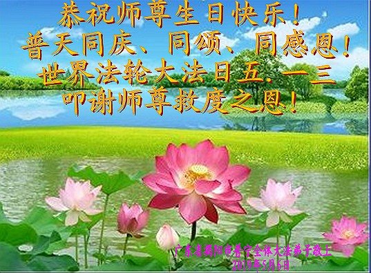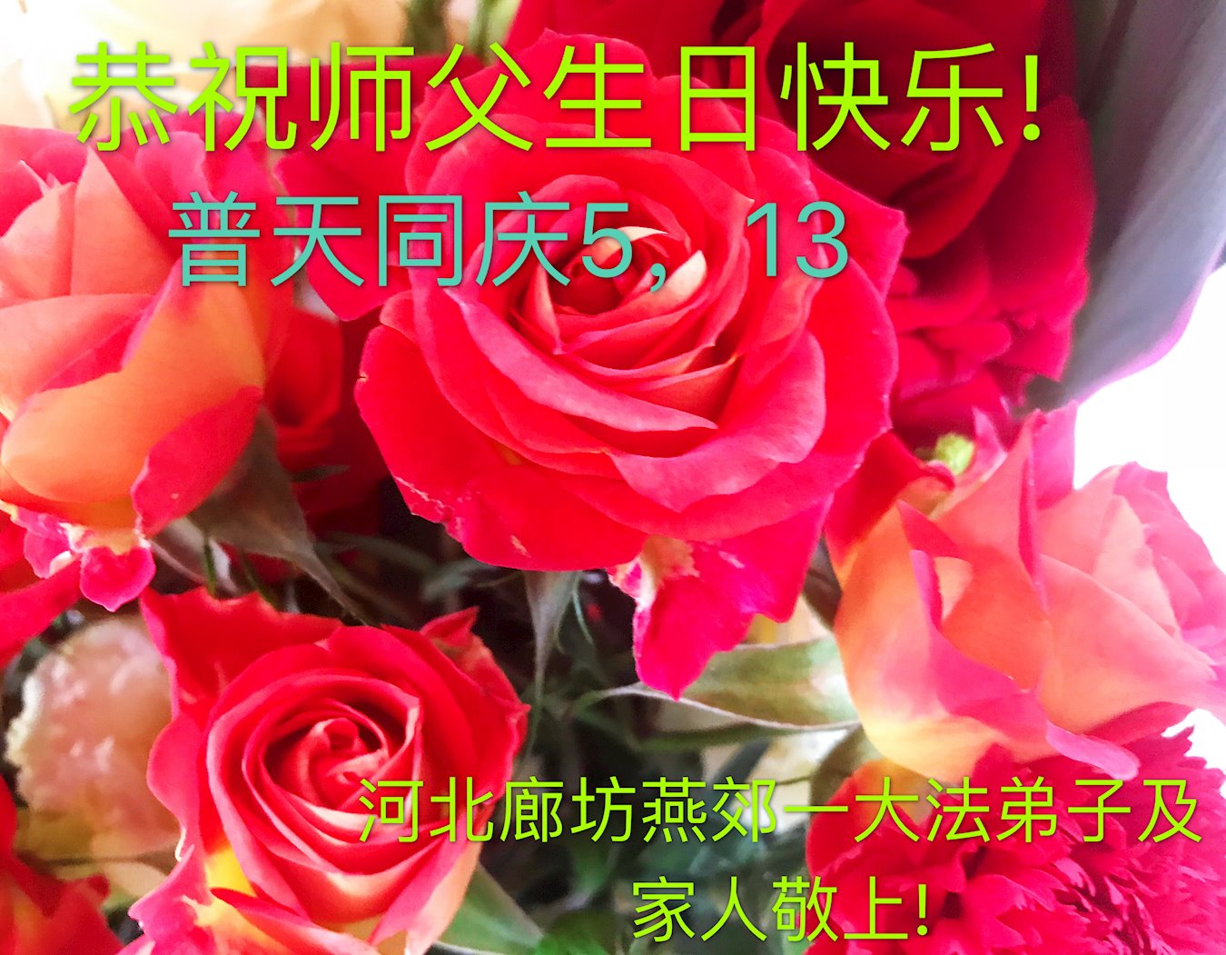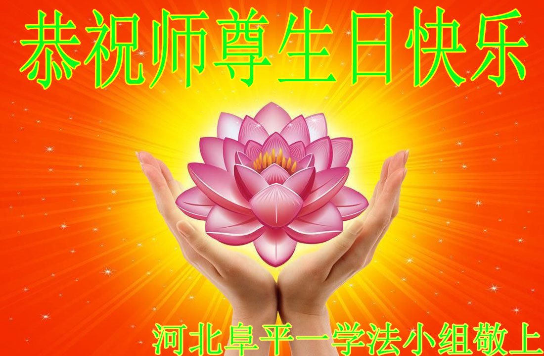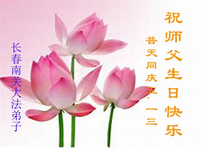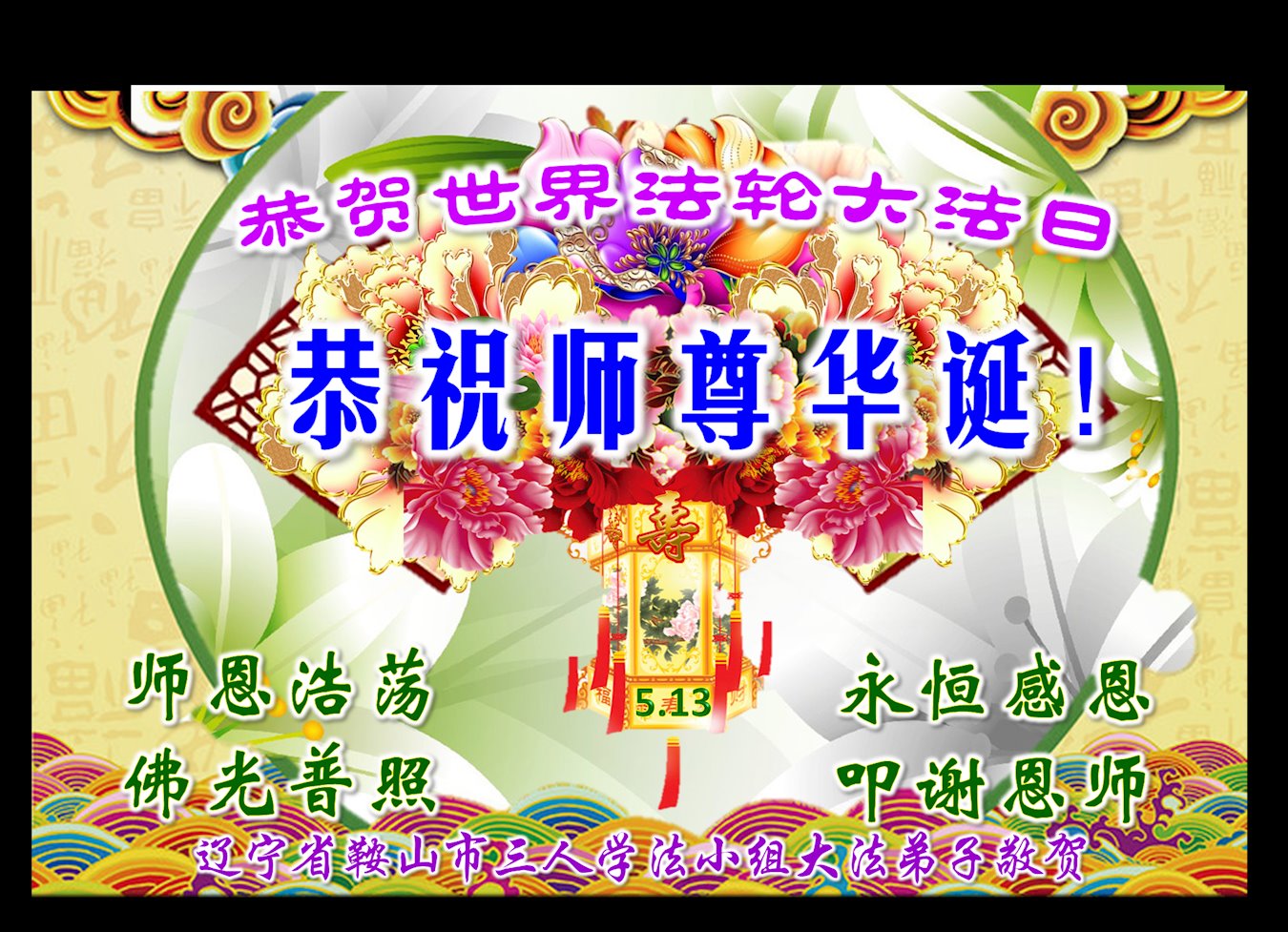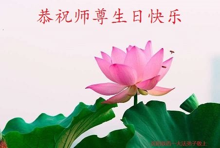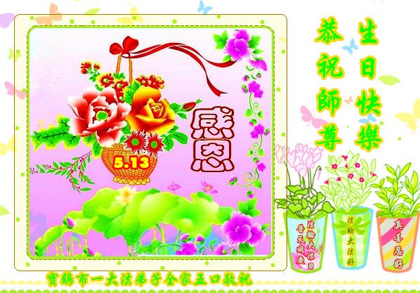 胡先生眼圈泛红地说:“我不会讲话,我真的感恩师父!庆祝五一三,我祝师父生日快乐!”