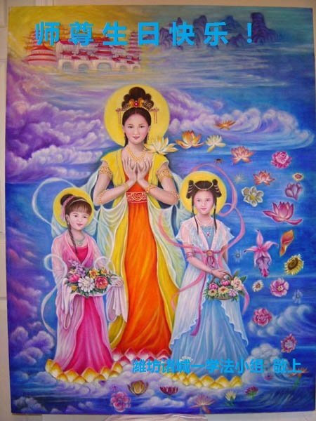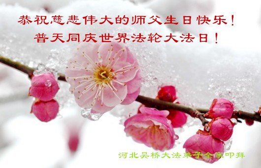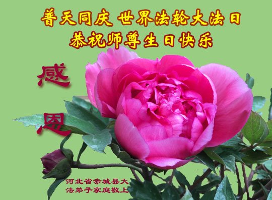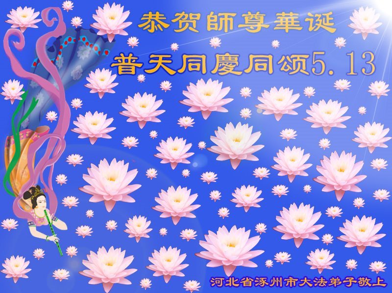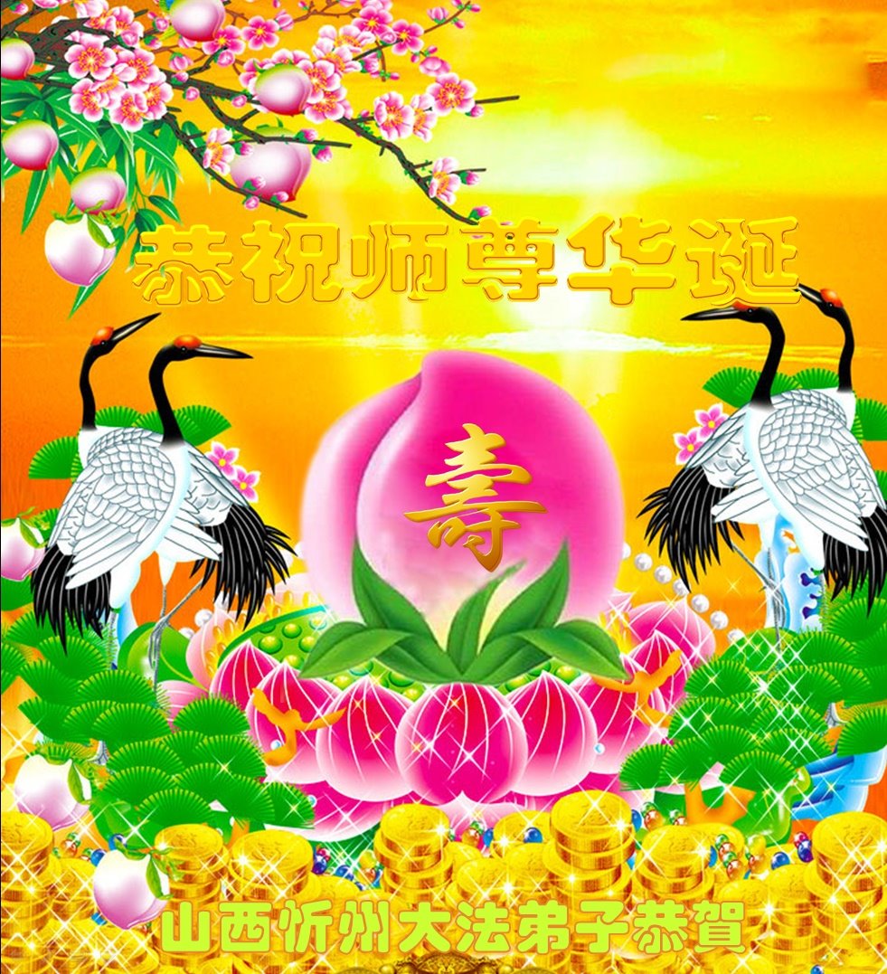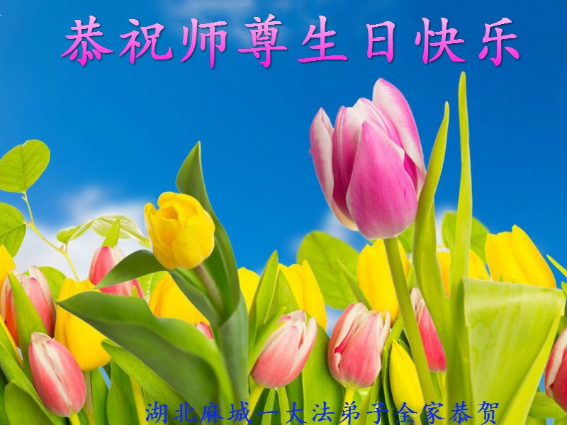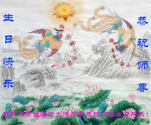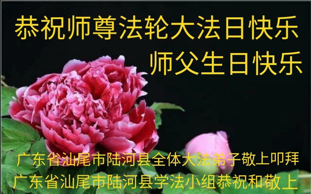 胡先生眼圈泛红地说:“我不会讲话,我真的感恩师父!庆祝五一三,我祝师父生日快乐!”