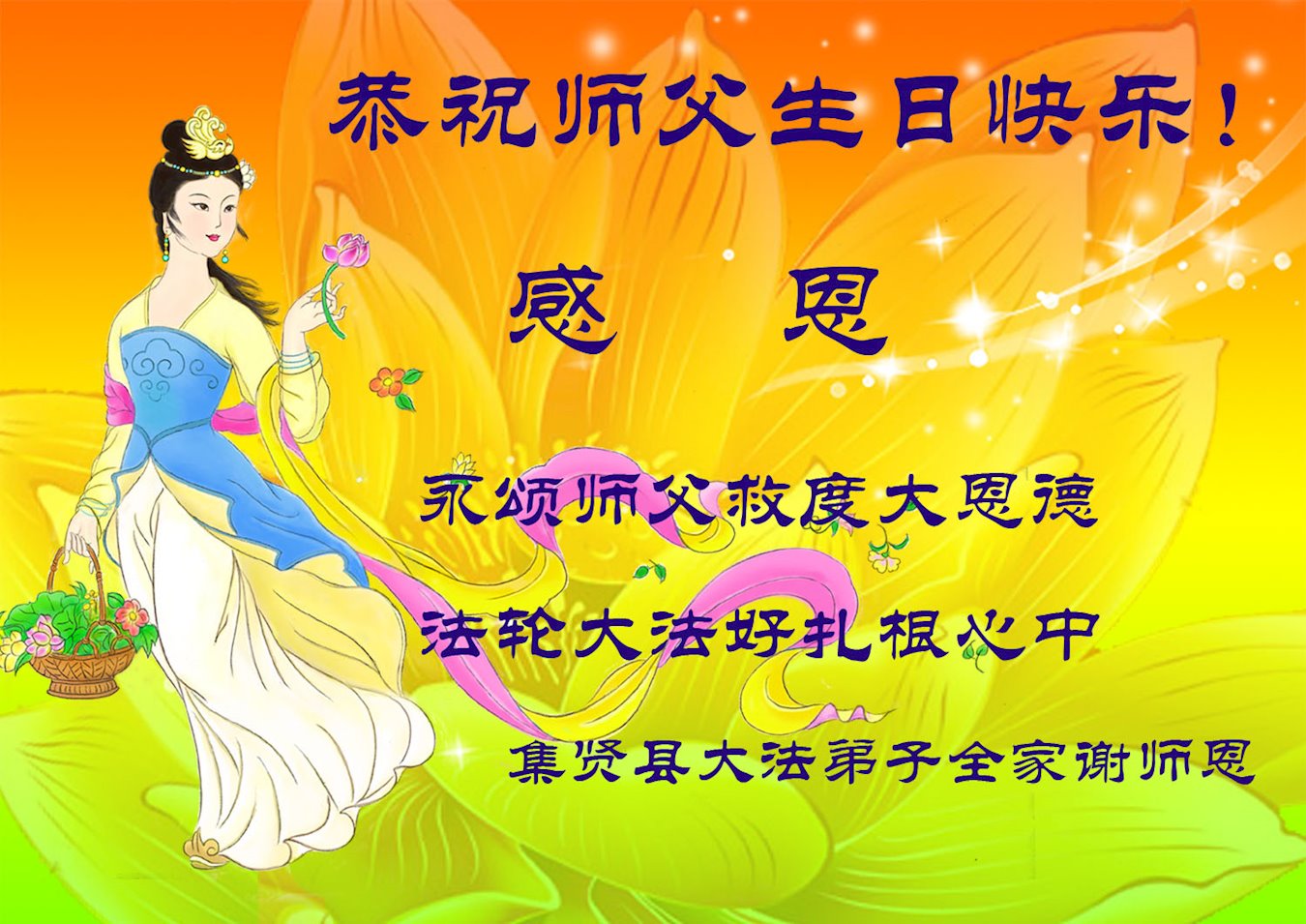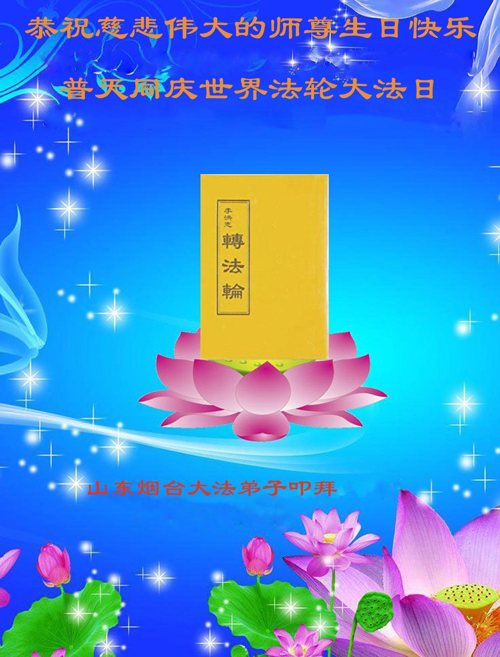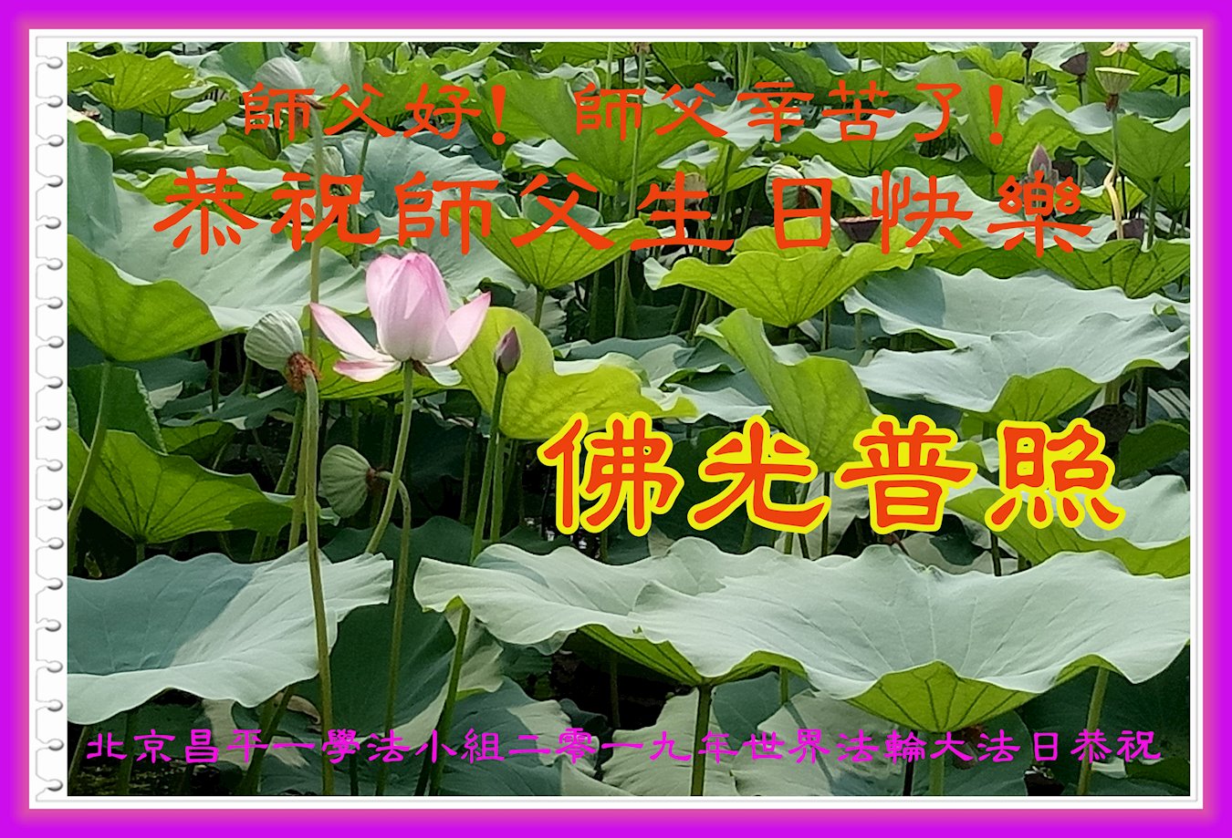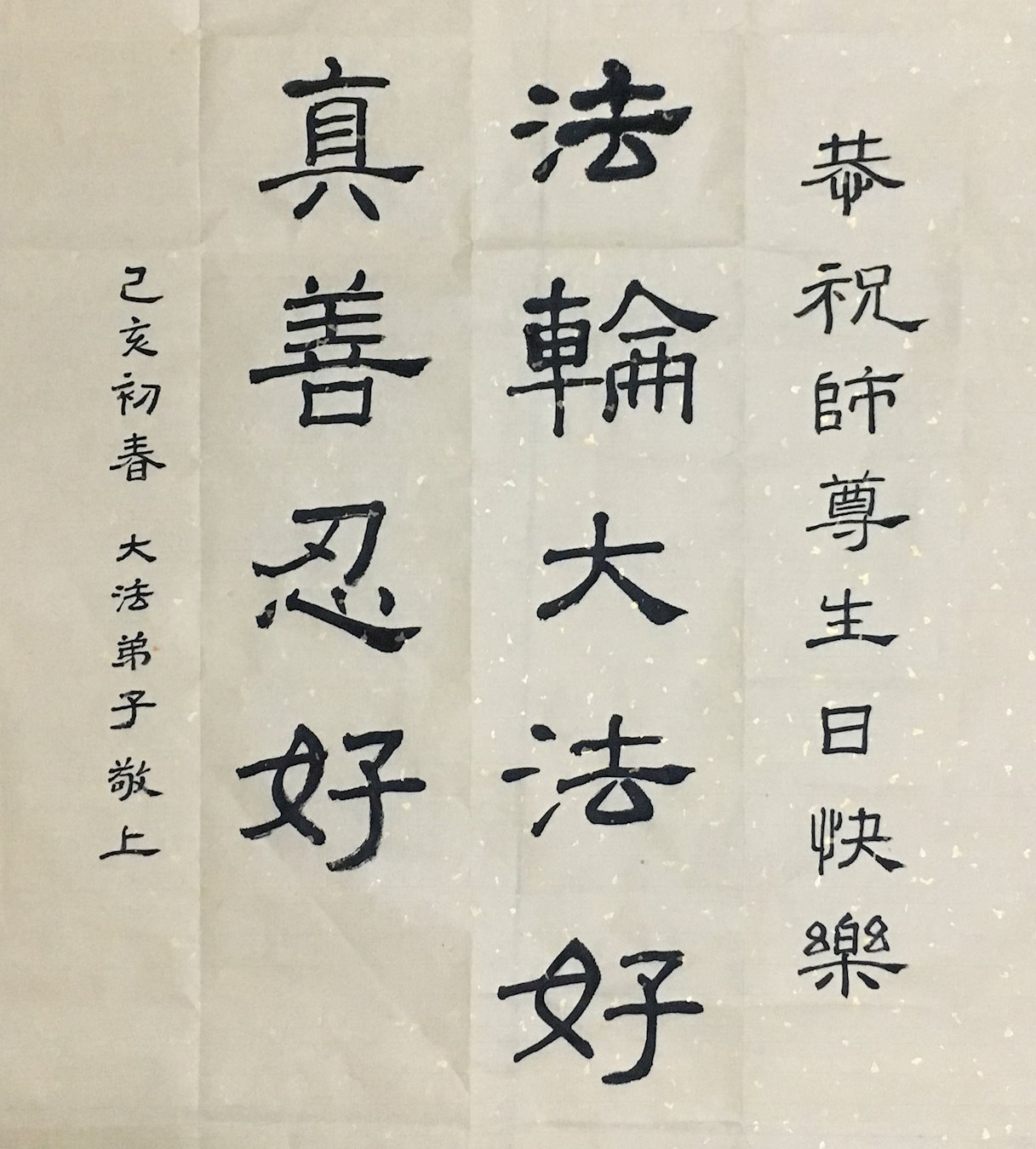 胡先生眼圈泛红地说:“我不会讲话,我真的感恩师父!庆祝五一三,我祝师父生日快乐!”