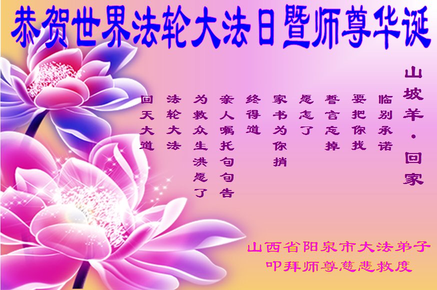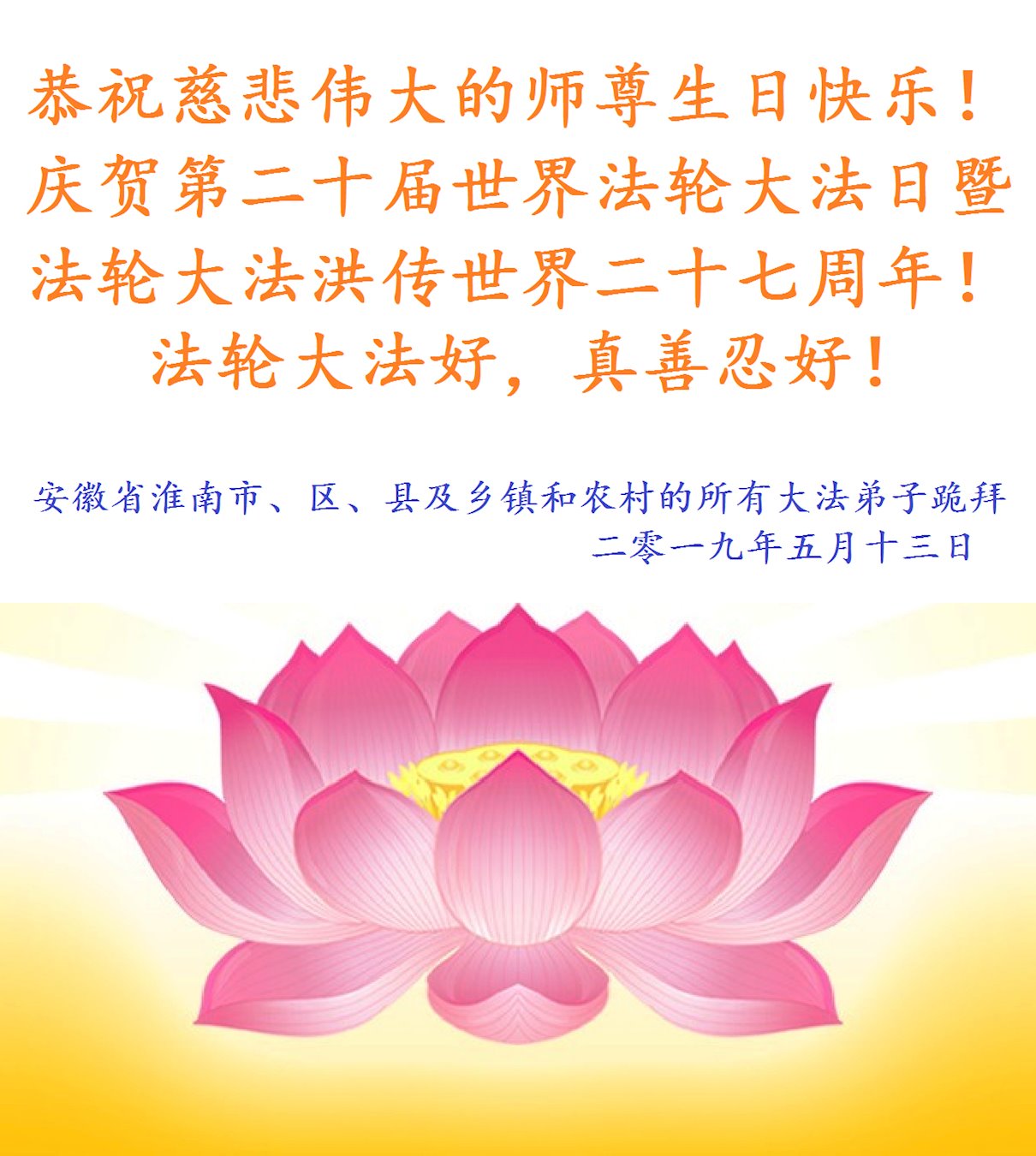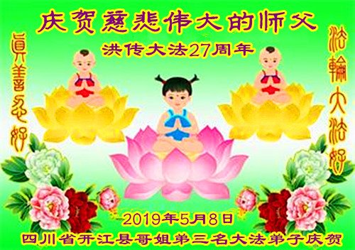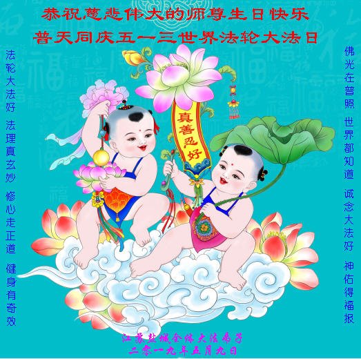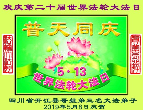【明慧网二零一九年五月十二日】(明慧网记者综合报道)在第二十届世界法轮大法日到来之际,中国各个领域的人士发来贺信,恭祝李大师生日快乐!恭祝世界法轮大法日!在大法弟子们一如既往的努力下,越来越多的中国百姓明白了法轮大法好,钦佩大法弟子在巨难中表现出的坚忍品格、慈悲善良的胸怀;中共二十年来针对法轮大法的污蔑宣传,没有蒙住中国民众的双眼。