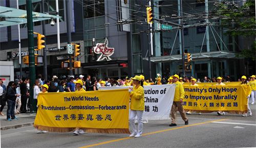 温哥华法轮功学员的游行路线在温哥华市中心最繁华的路段,途径五帆酒店等温哥华地标建筑,游行路线大约5公里,历时近2小时。