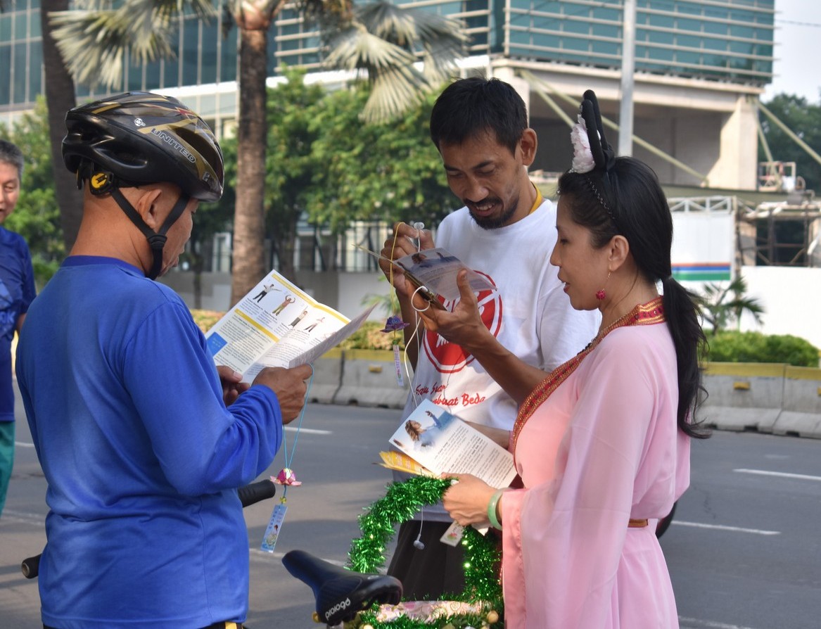 路人听了真相,很多都会高兴的接受简介和莲花。更有行人听了真相后对法轮功很感兴趣,当即想学功加入炼功队伍。法轮功的炼功活动是公开的也是免费的,适合所有阶层的人学习。