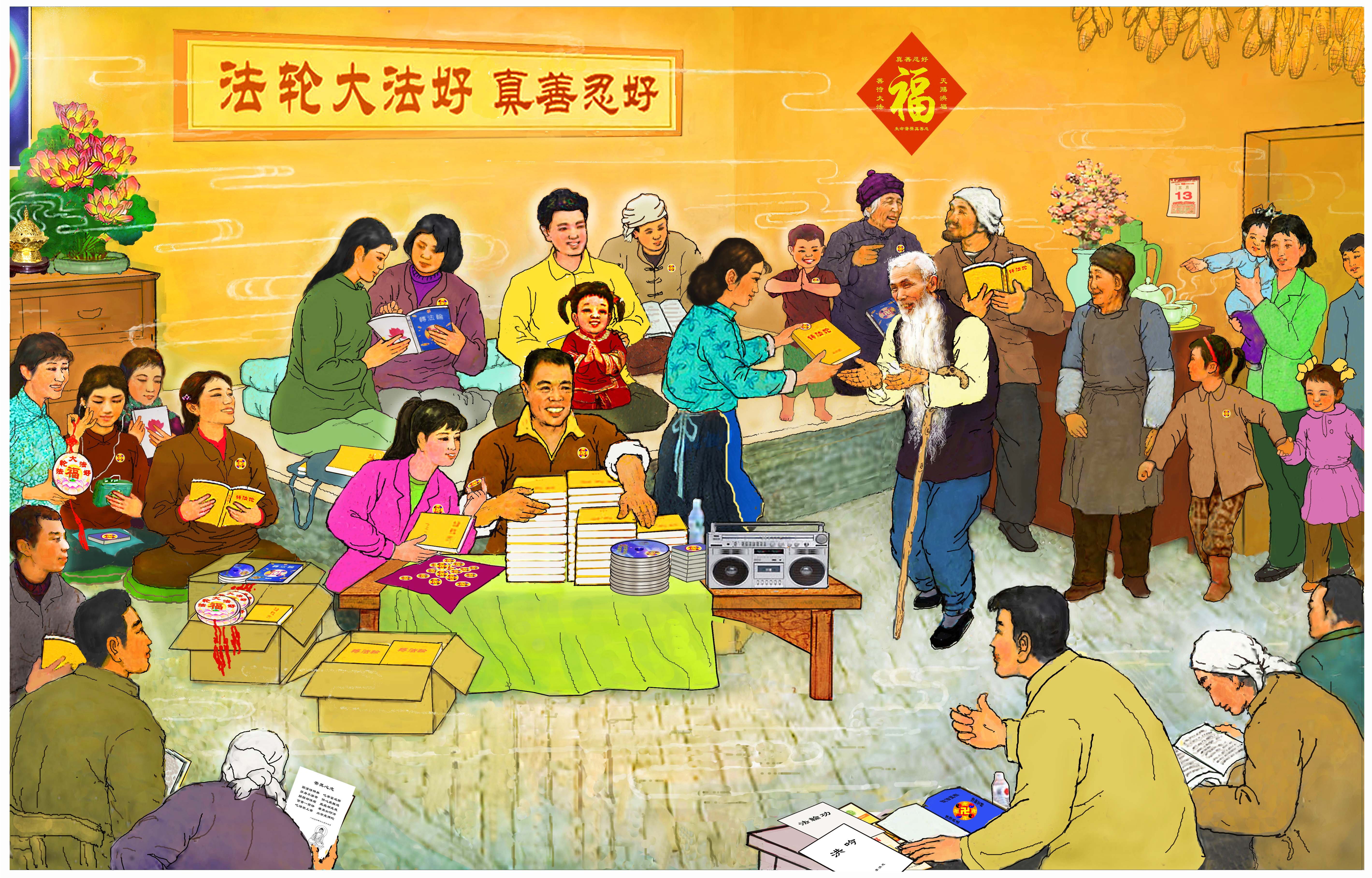 【庆祝513】绘画:大法宝书到咱村