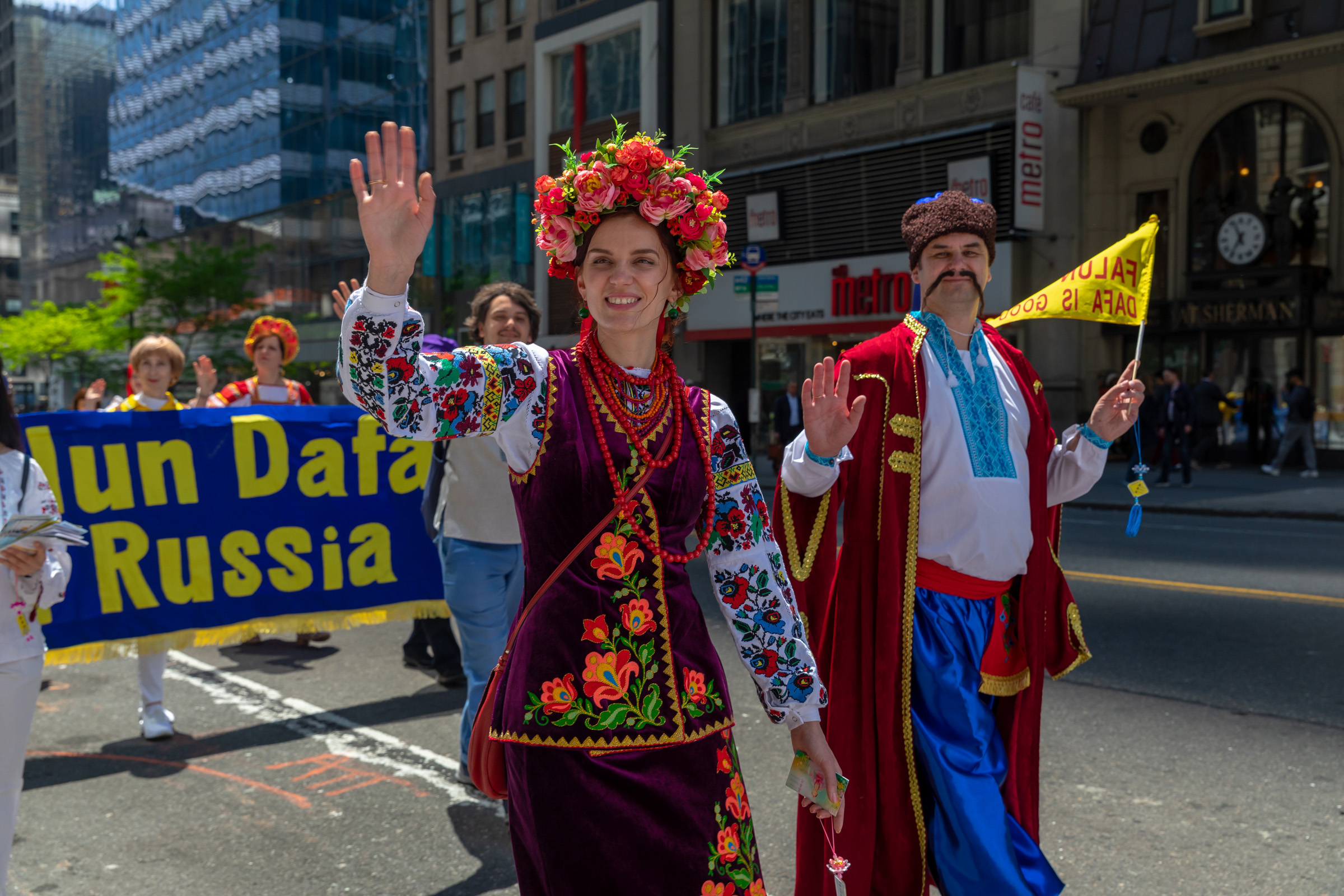 【明慧网二零一九年五月十七日】(明慧记者李晓纽约采访报道)二零一九年五月十六日,来自世界各地的约万名法轮大法修炼者齐聚在美国纽约的联合国公园,庆祝世界法轮大法日。他们怀着喜悦的心情,身着节日盛装,在天国乐团演奏的《法轮大法好》乐曲声中行进在曼哈顿的中心街道上,欢庆第二十届“世界法轮大法日”、法轮大法弘传二十七周年。喜庆的场面吸引了众多的民众驻足观看。