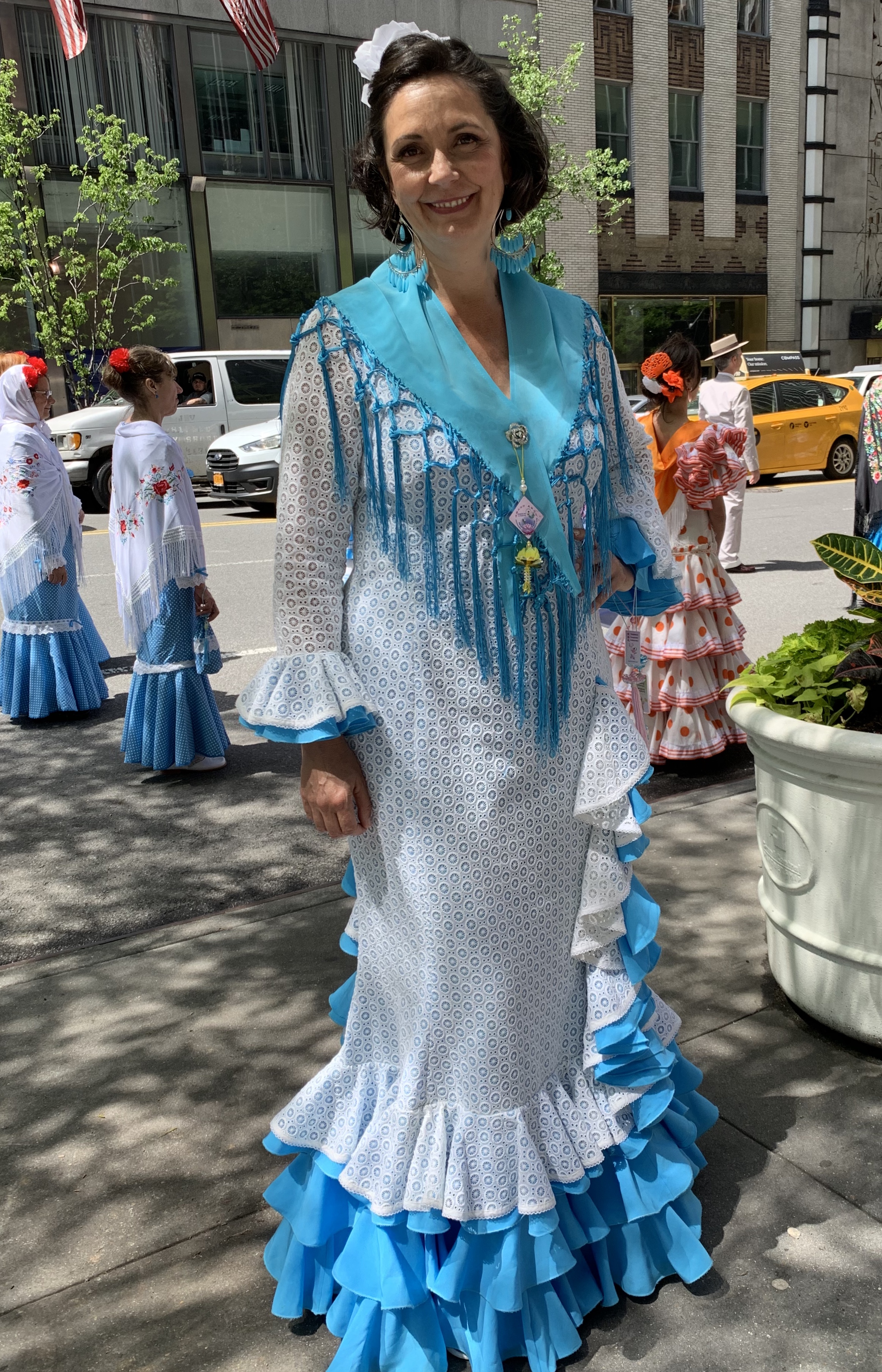 今天,福罗拉斯穿着西班牙南方的一种传统服饰来到纽约曼哈顿参加游行,她说:“当我们庆祝的时候就会穿上(这种传统服饰)。我今天穿上它来到纽约就想告诉全世界,我来自西班牙,法轮大法充满神奇,我在西班牙修炼法轮大法。我希望在世界的任何地方都可以自由修炼法轮大法。今天我来这里庆祝法轮大法(洪传27周年),并感谢法轮大法,感谢李洪志师父给我生命带来的美好一切。我想让所有人都知道这一点。”