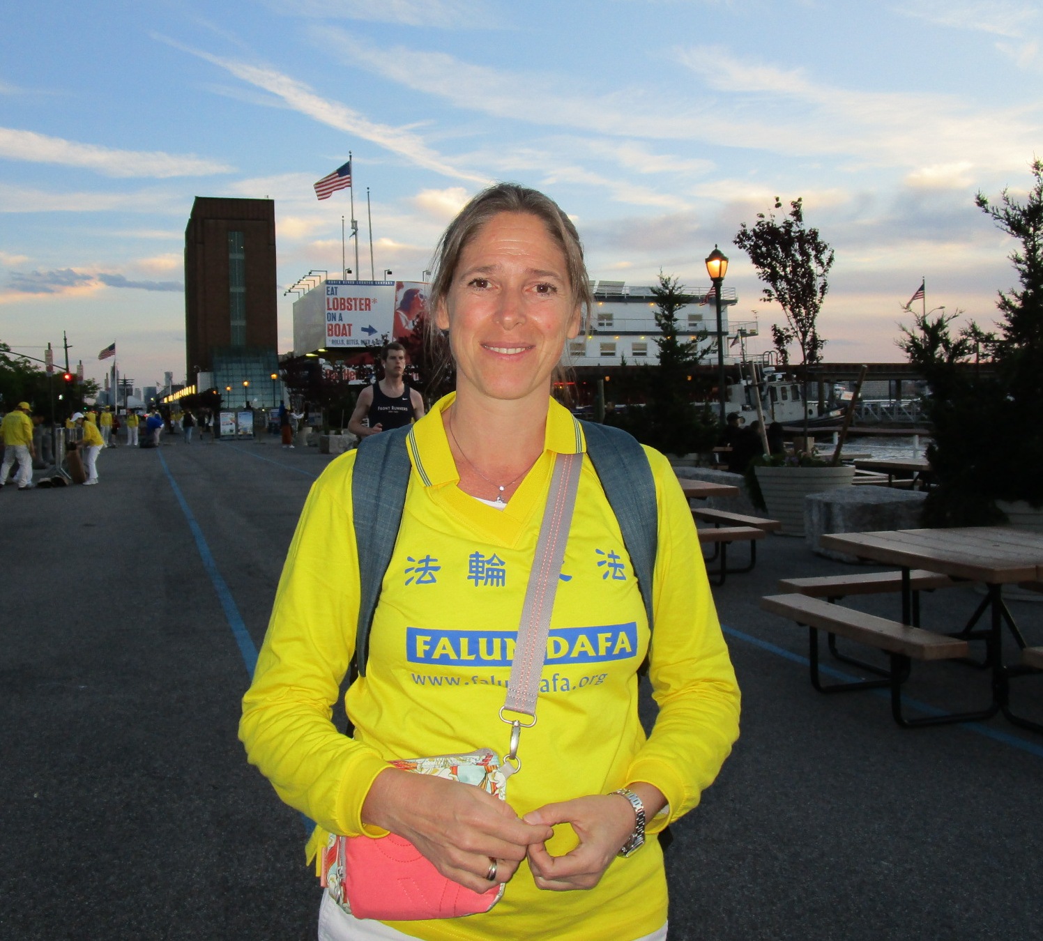 今天来到纽约,她要告诉中国人:“西方社会人们可以自由地修炼法轮功,热爱法轮功。法轮功是中国古老的文化,还是免费就可以学到,我为自己可以修炼法轮功而感到幸福和自豪。”