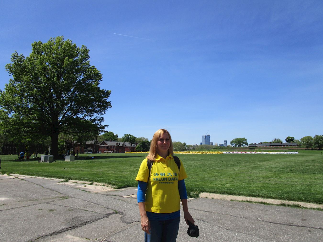 来自英国伦敦的黛比·穆福德(Debbie Muford)说很开心能参加今天的排字活动,她感觉充满了能量。黛比表示,她飞越数千里来到纽约参加包括今天排字在内的一系列活动,一是为了和来自世界各地的学员们齐聚一堂,聆听他们的修炼体会,比学比修;另一个原因是希望这样的盛会能使更多人有机会了解真实的法轮功。