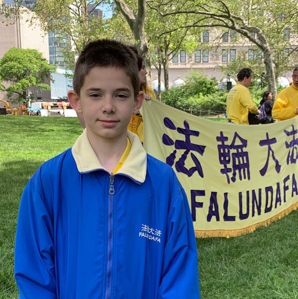 炮台公园里,部份欧洲法轮功学员在这儿展示功法。来自乌克兰的努克塔·普瑞马(Nykyta Pryma)今年才十一岁,但他从小就开始修炼了。叔叔阿姨们在草坪上拉着横幅,展示功法,他向路过的民众派发着介绍法轮大法的小册子。他说:“修炼法轮功是一件正确的事情,是我自己想做的事情,不是父母逼着我做的。法轮功能给人一个健康的身体,同时又能提升人的精神世界。我的爸爸在修炼前有心脏病,但他修炼一个月以后,心脏病就消失了。(我知道)心脏病是不会这样随便就能消失的。真善忍的法理也让我知道了如何成为一个更好的人。”
