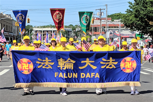 【明慧网二零一九年五月三十一日】2019年5月27日,全美最大的“阵亡将士纪念日游行”――第92届“小颈-道格拉斯顿阵亡将士纪念日游行”(Little Neck-Douglaston Memorial Day Parade)在纽约皇后区小颈举行,共有170多个游行团体,法轮功学员队伍再一次应邀参加。