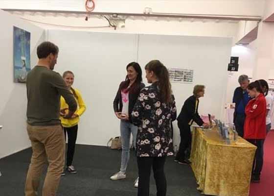 四月二十六日开始,奥地利法轮功学员参加了为期六天的春天博览会,并在介绍健康保健的展馆向民众介绍法轮功。