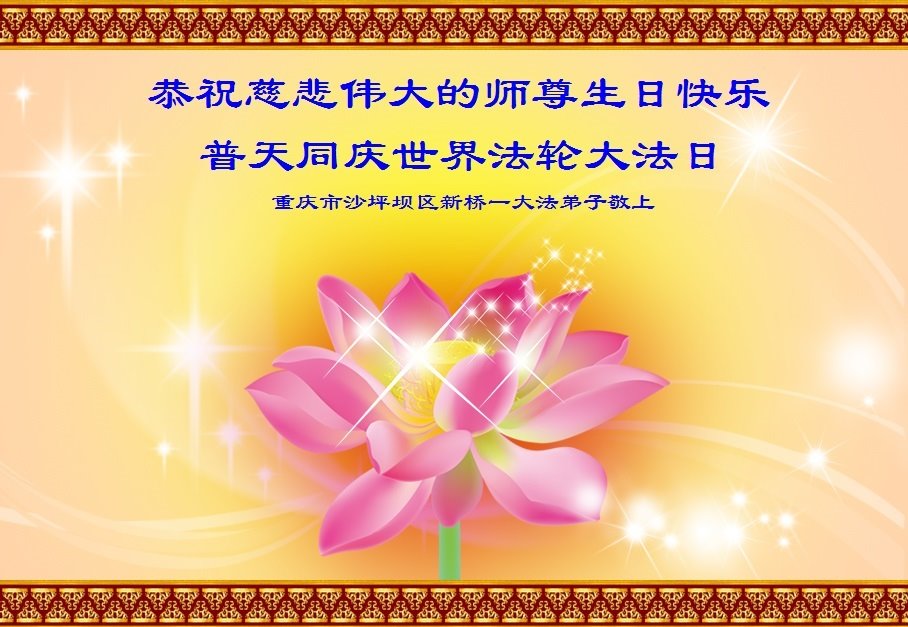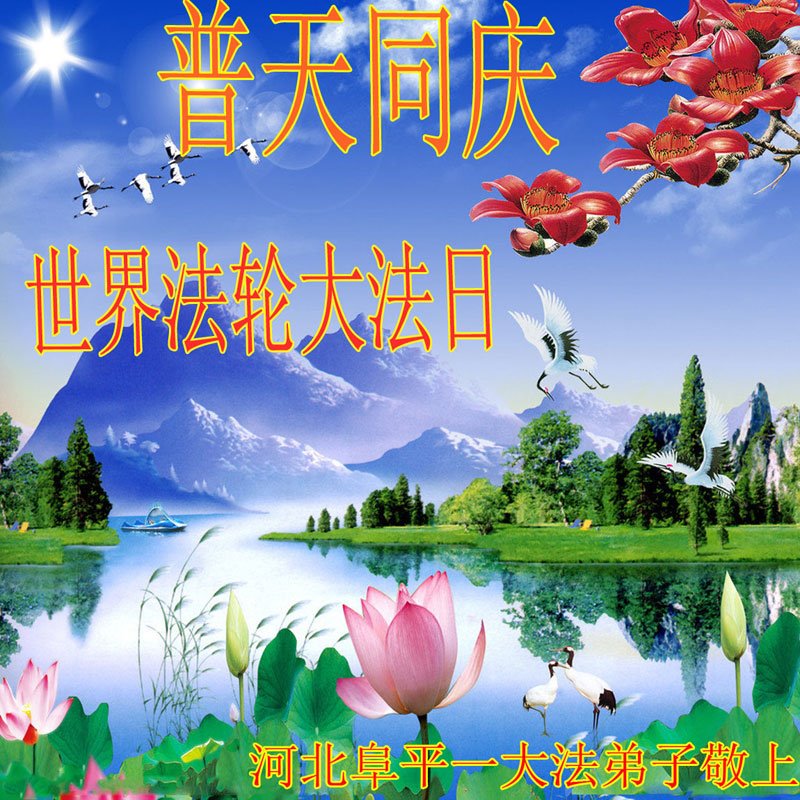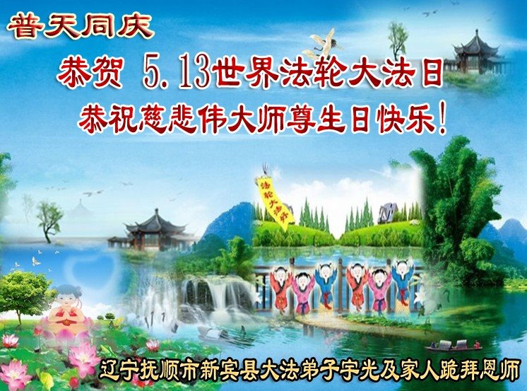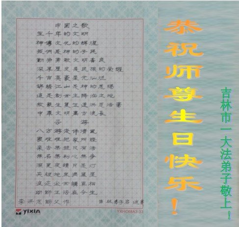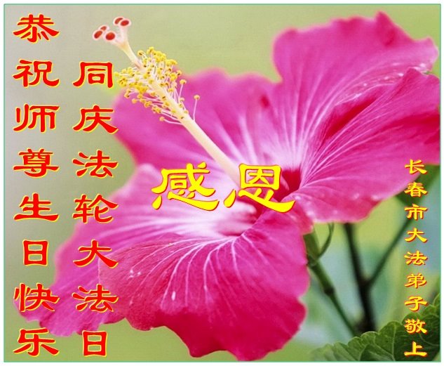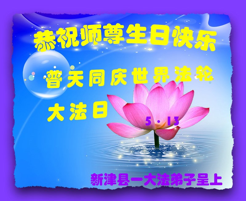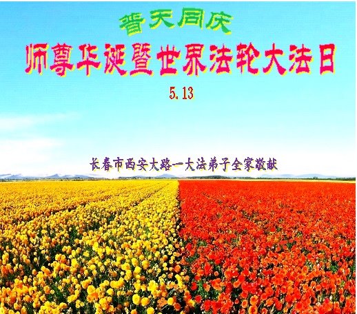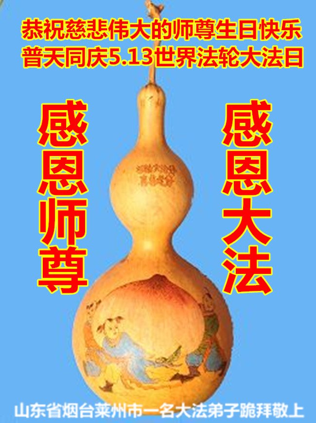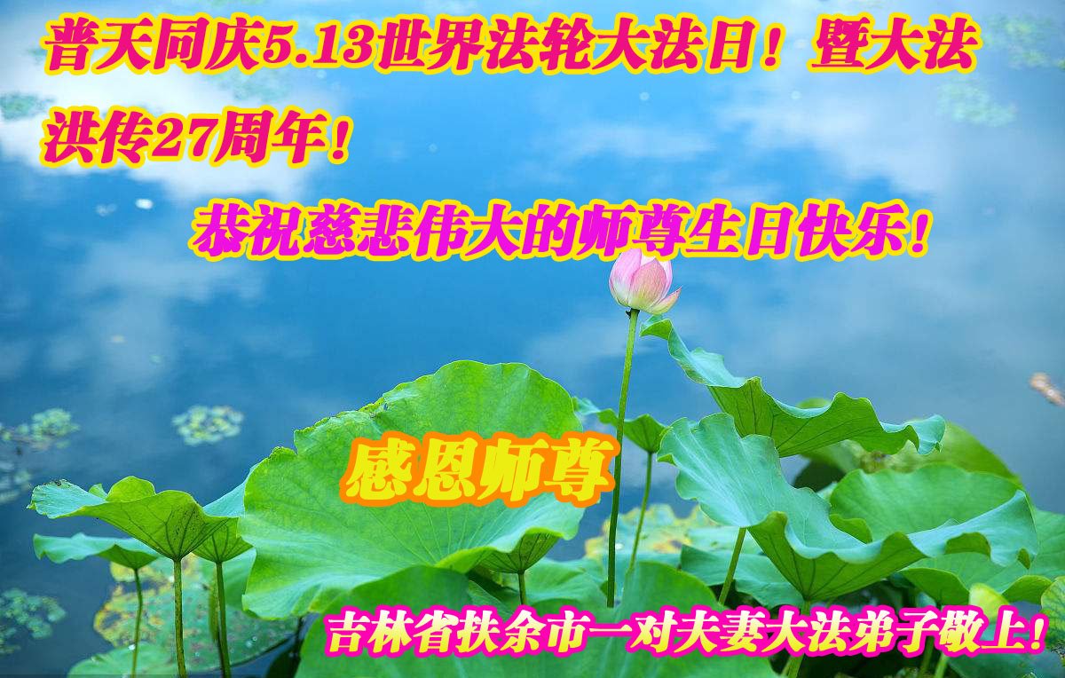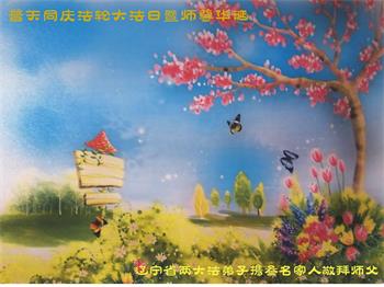 普天同庆“世界法轮大法日”,“法轮大法好”、“真善忍好” 九字吉言传洪宇。恭祝师尊生日快乐!谢师恩!弟子再精進。