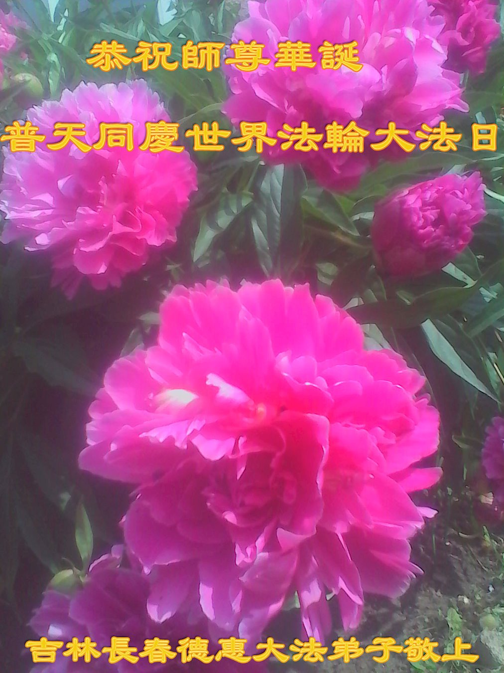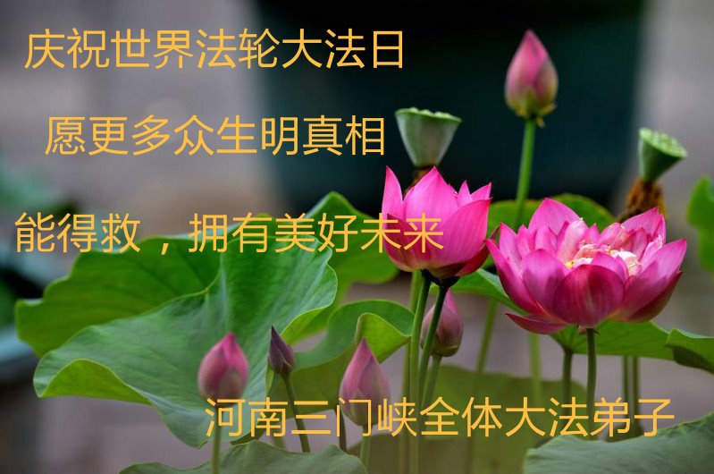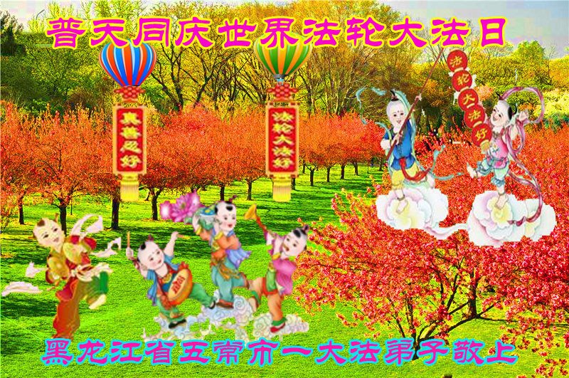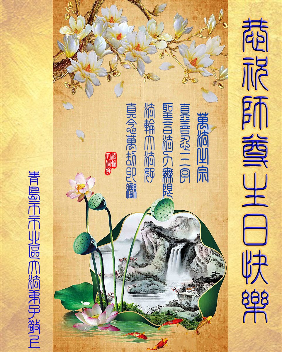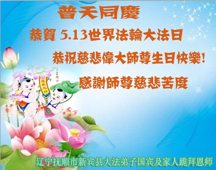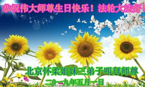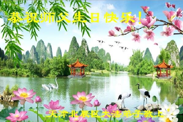 普天同庆“世界法轮大法日”,“法轮大法好”、“真善忍好” 九字吉言传洪宇。恭祝师尊生日快乐!谢师恩!弟子再精進。