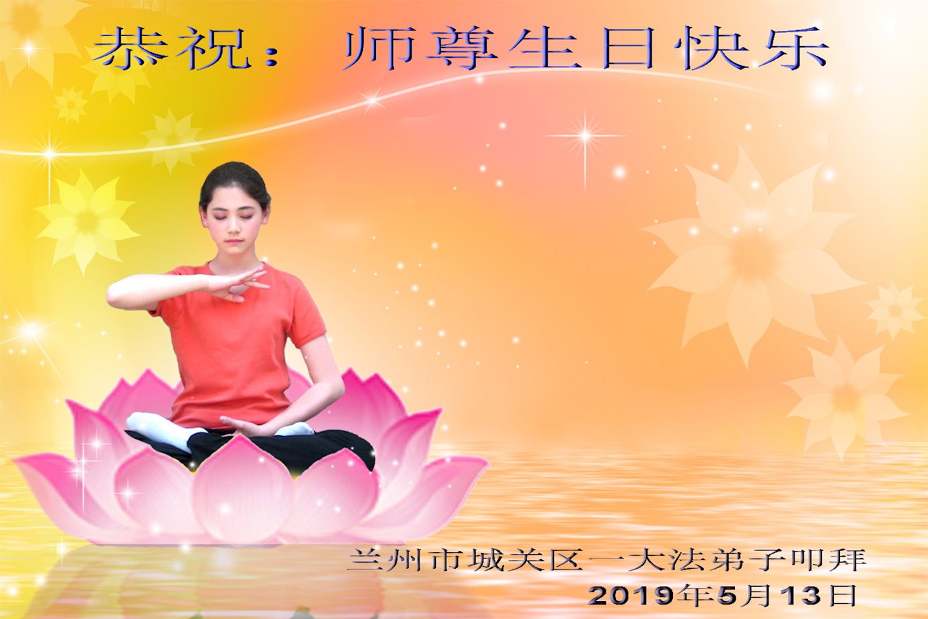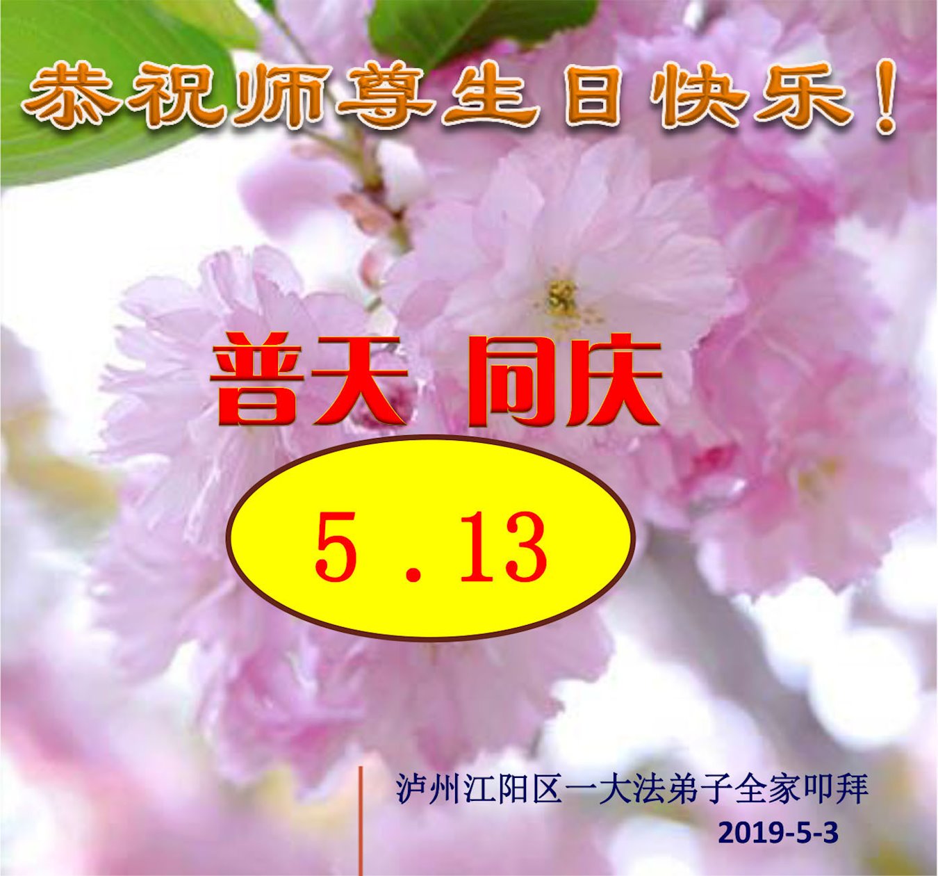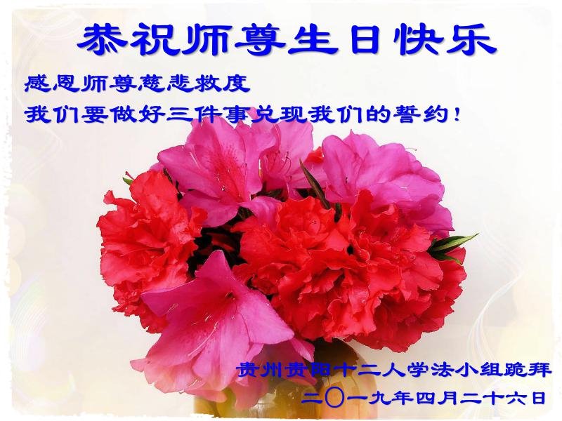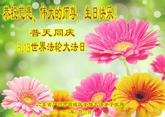 广州市大法弟子及家人恭祝慈悲伟大的师尊2019年生日快乐!感恩师尊慈悲救度,我们感谢师尊!