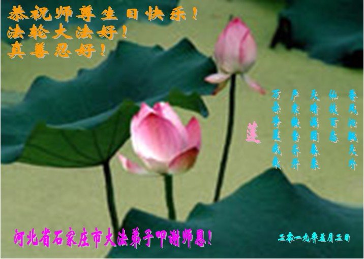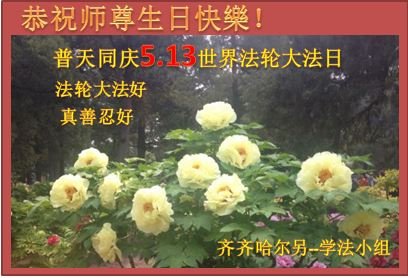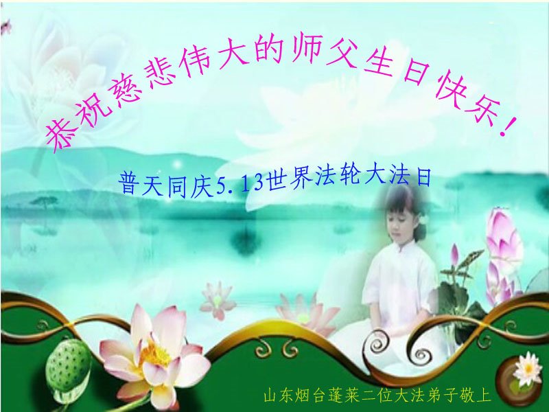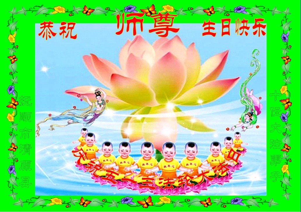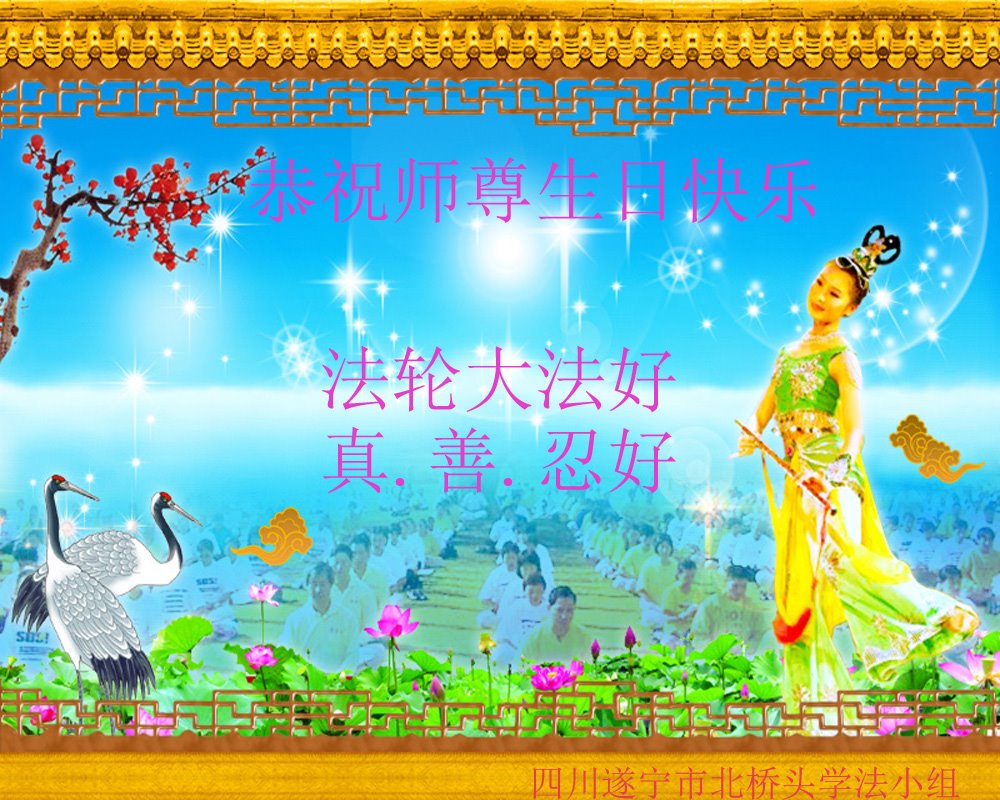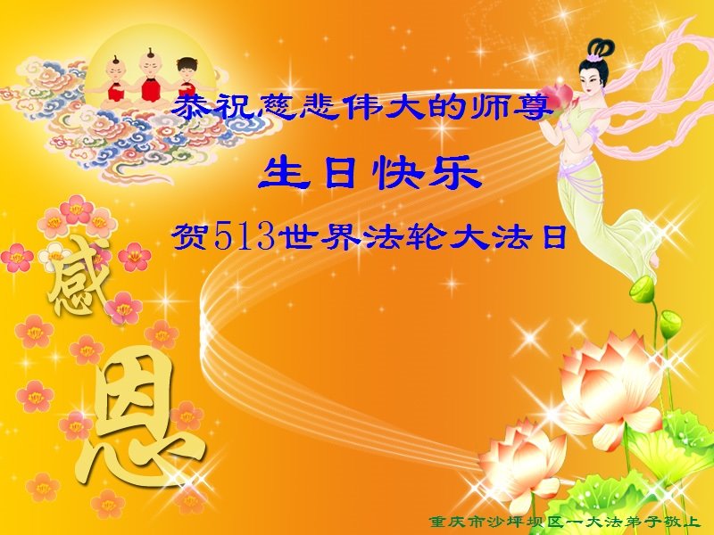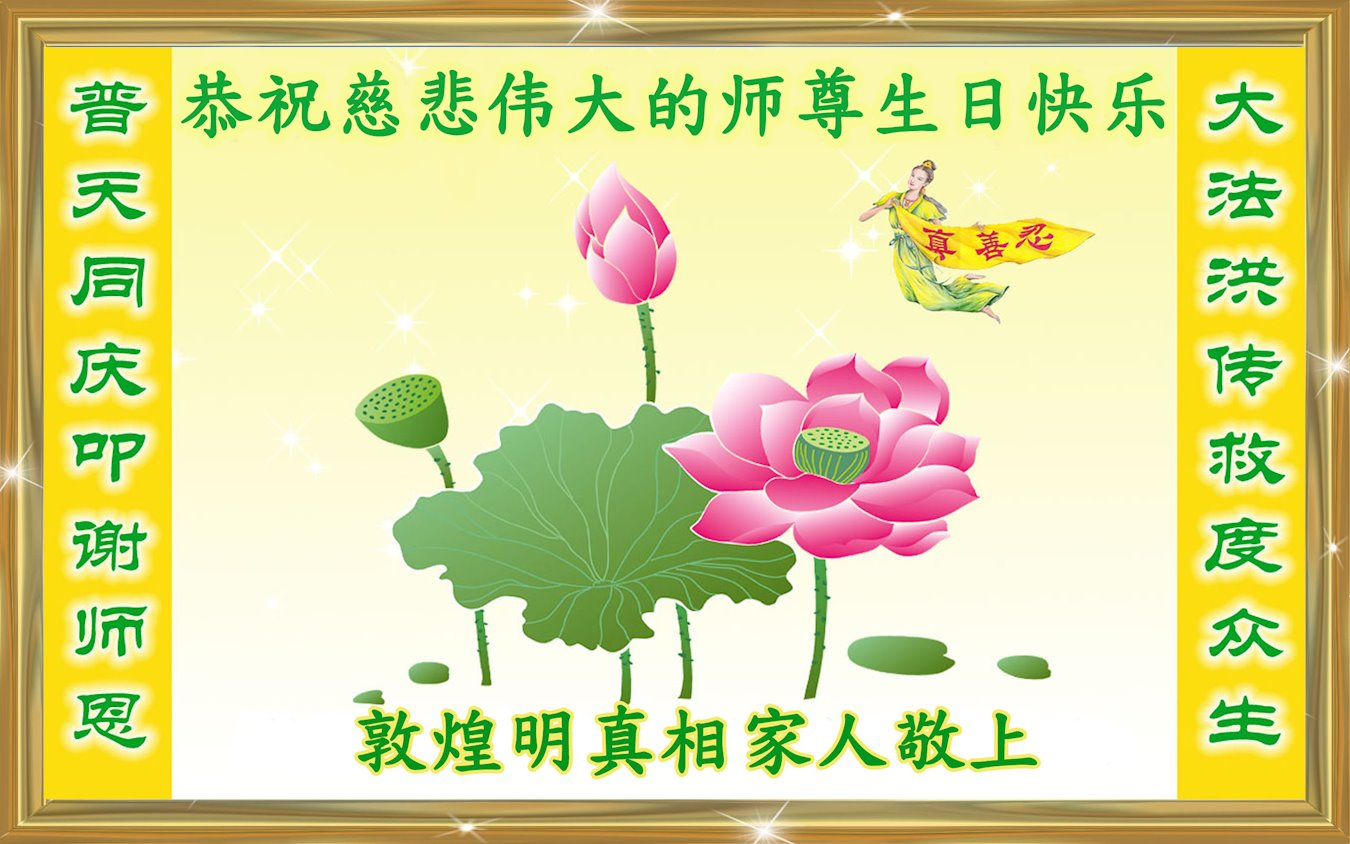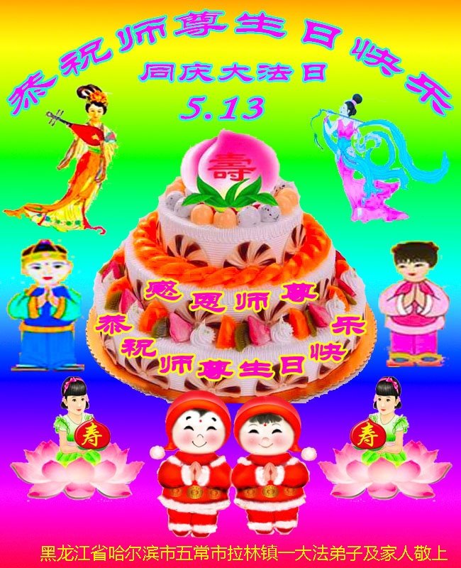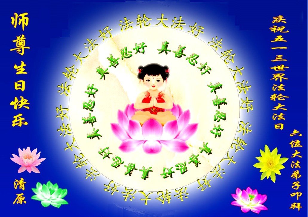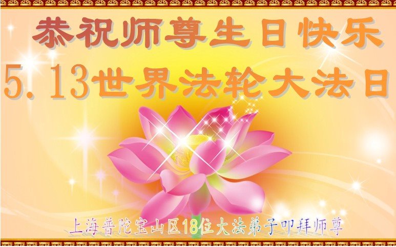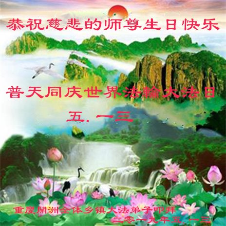 恭祝师父生日快乐!恭贺世界法轮大法日!法轮大法好!真善忍好!