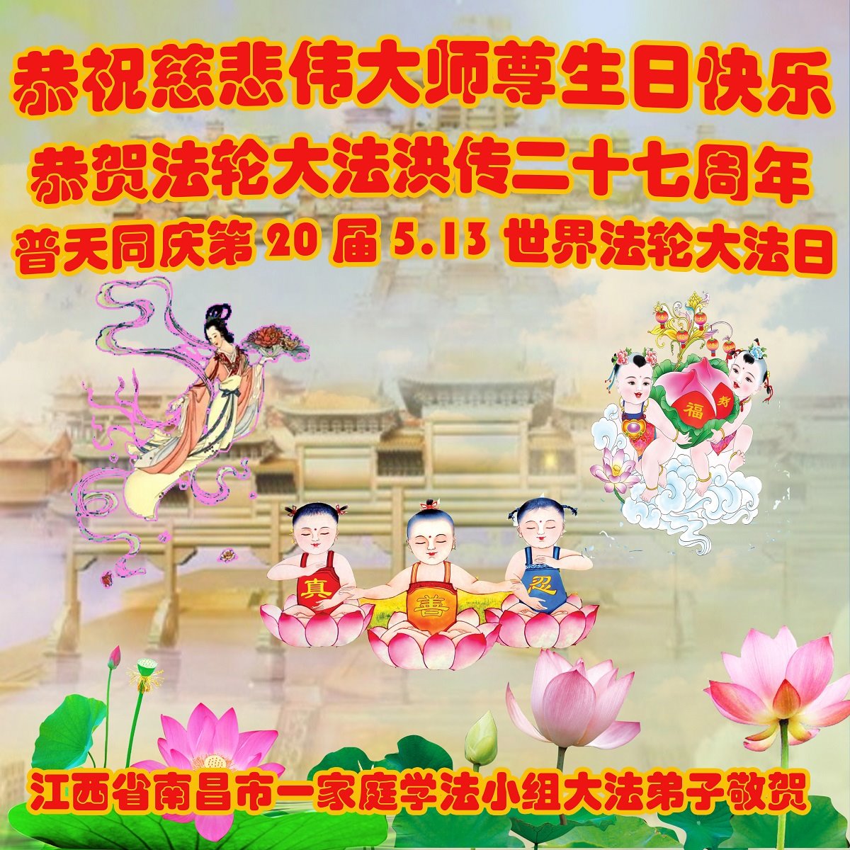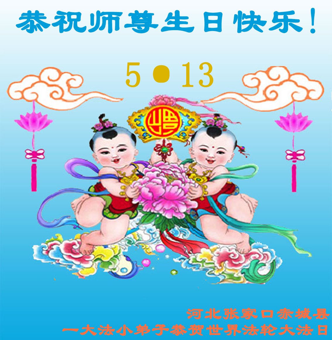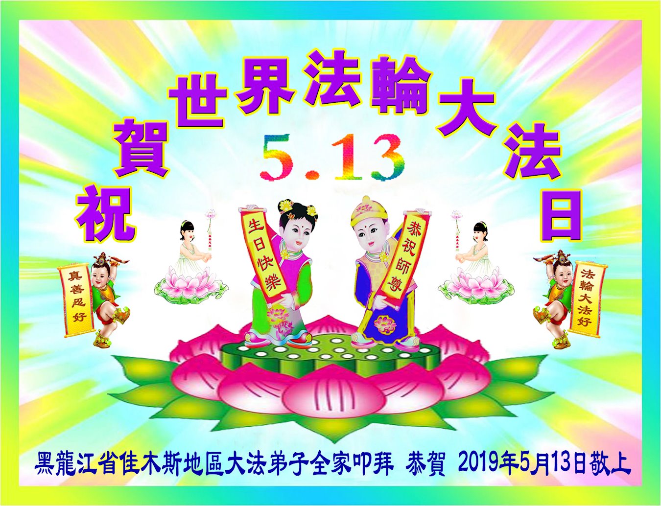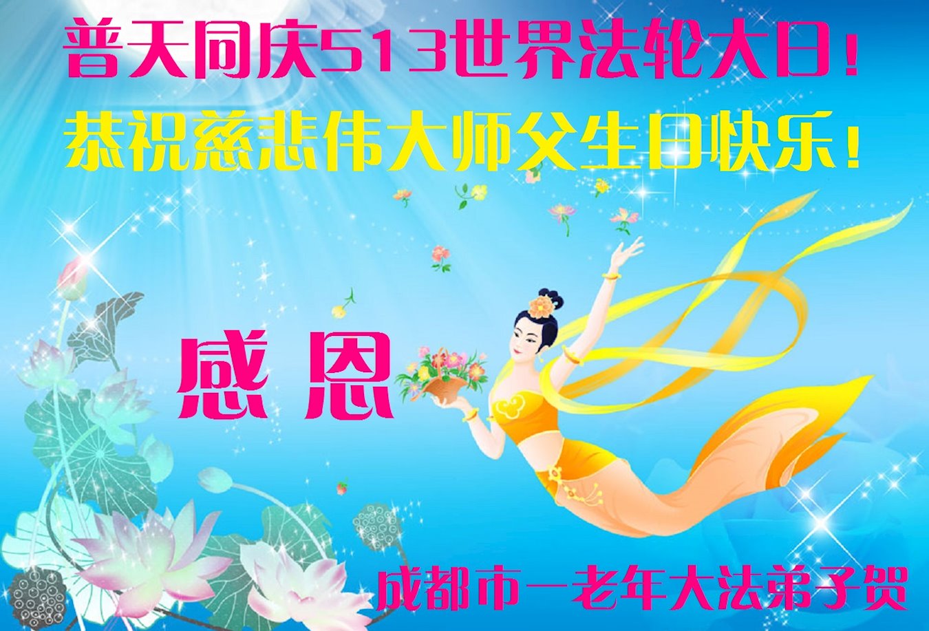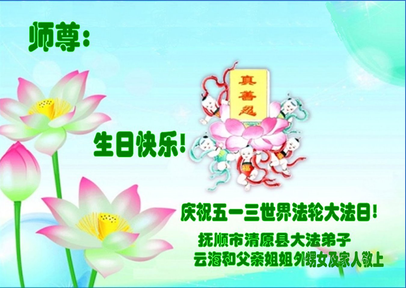恭祝师父生日快乐!恭贺世界法轮大法日!法轮大法好!真善忍好!