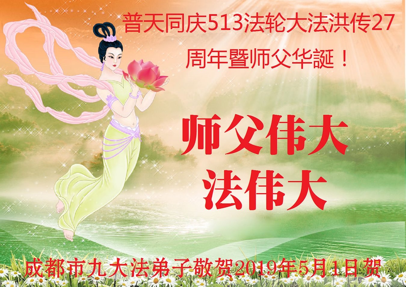 同庆第二十届世界法轮大法日大法洪传二十七周年!