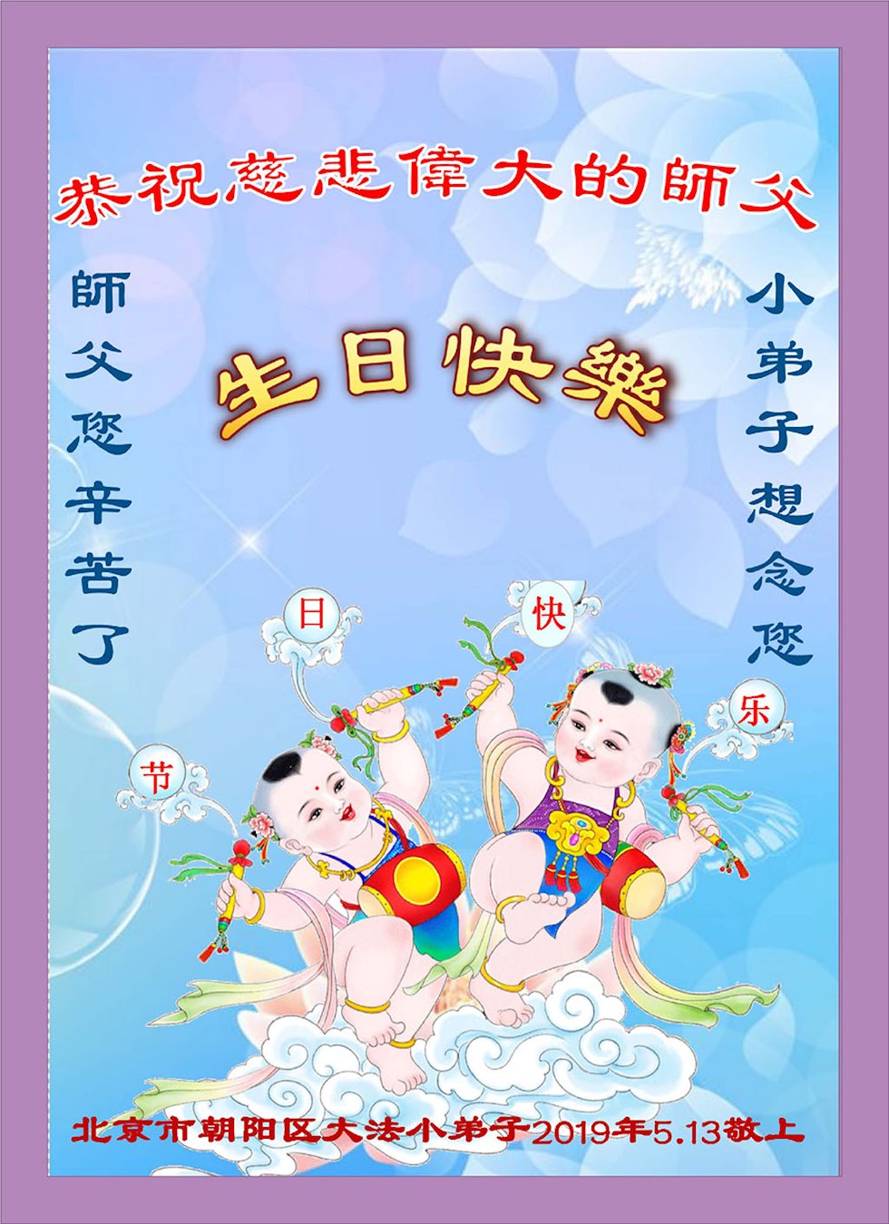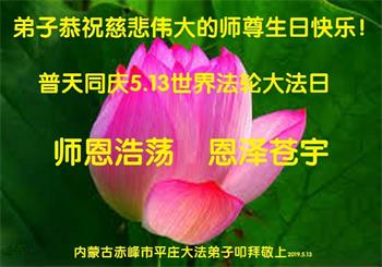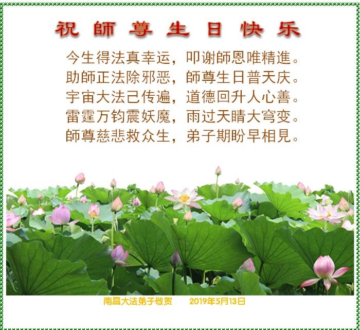 <英文版: http://en.minghui.org/html/articles/2019/5/9/176849.html>教育系统大法弟子恭贺法轮大法日暨师尊华诞(20条)