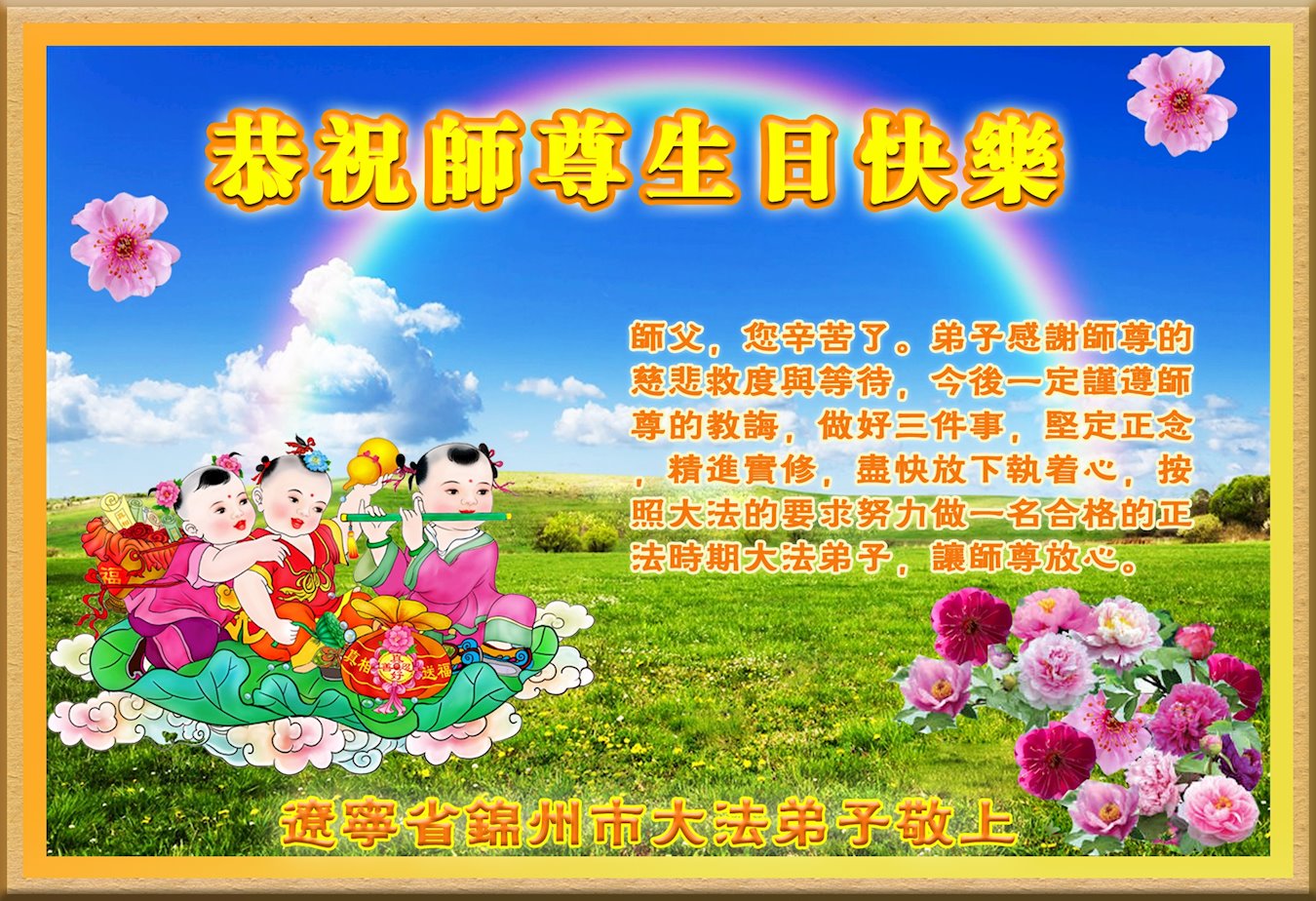 师父您好!师父生日快乐!凌海乡村全体大法弟子恭祝师父生日快乐!我们听师父的话,实修,多救人。感恩师父慈悲救度!