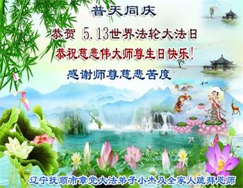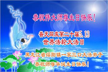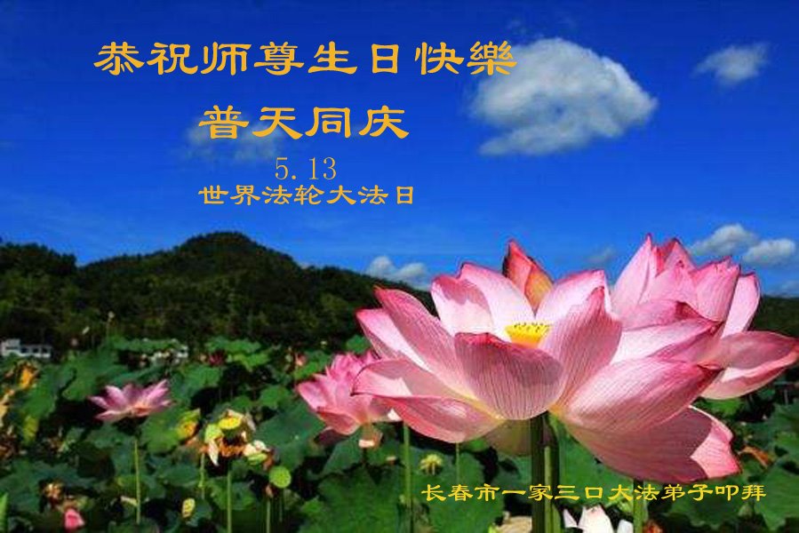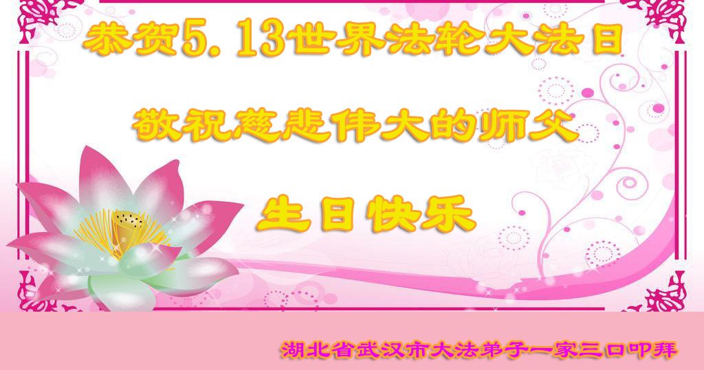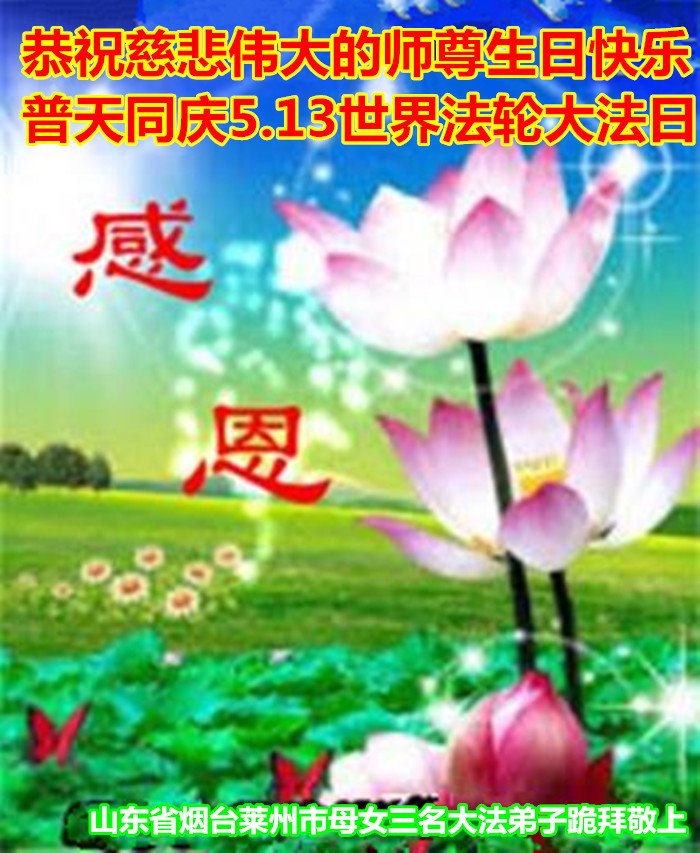 同时庆祝513世界法轮大法日!感恩师父的慈悲救度,一家三口叩谢师父!师父辛苦了!