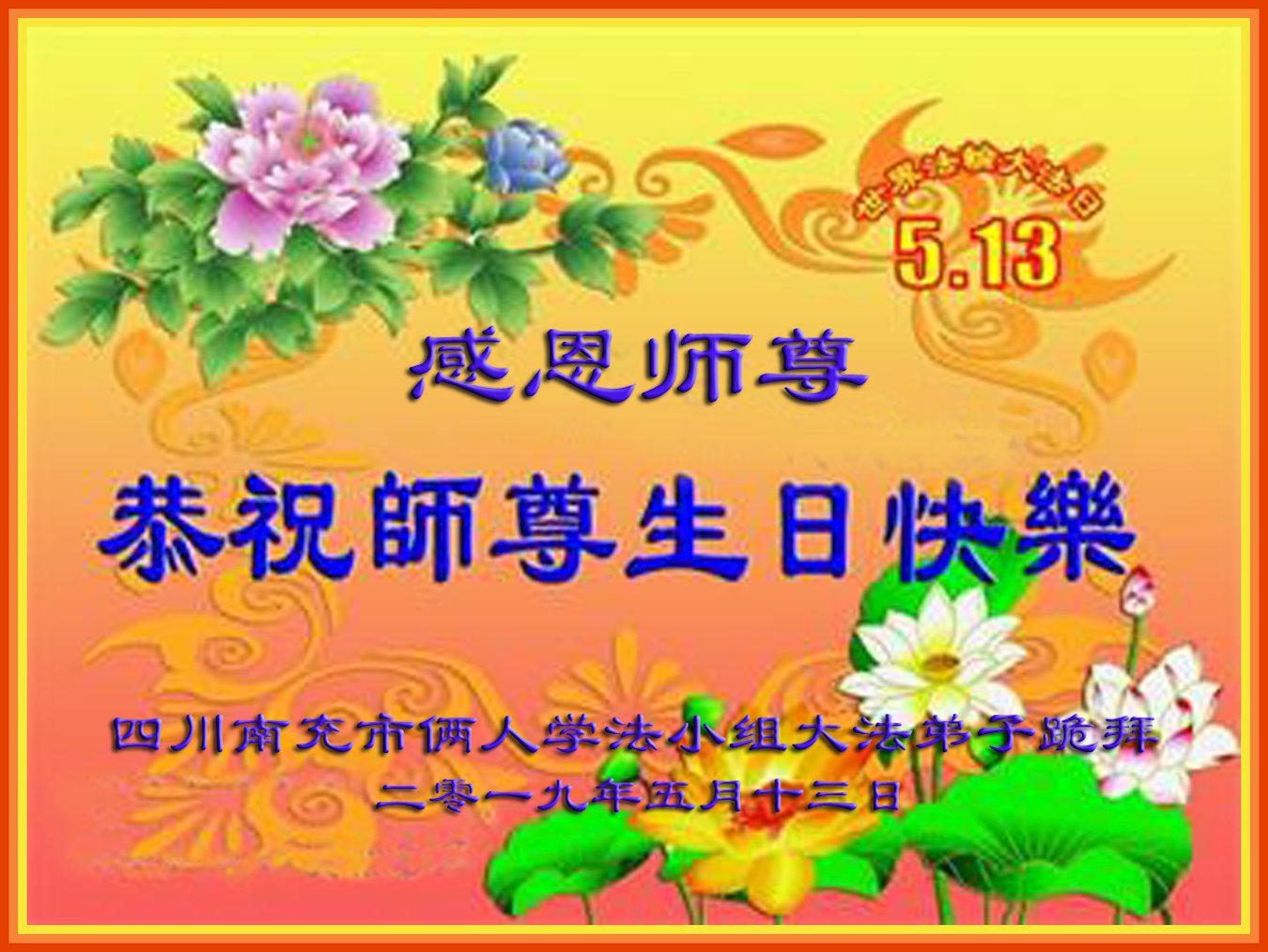 恭祝师尊:生日快乐!恭贺世界法轮大法日!