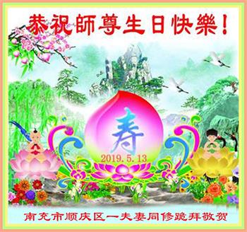 四川省营山一退休教师大法弟子同庆同祝同颂五·一三世界大法日!