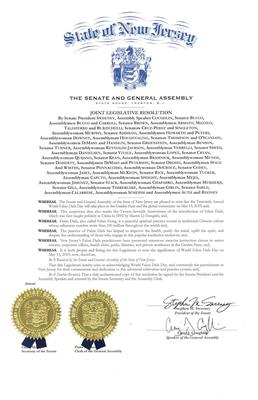 本立法机构特此共同表彰世界法轮大法日,并赞扬新泽西州的修炼者对这个高级修炼体系的专注和奉献精神;并且,