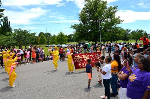 ![]() 图1~4:法轮功学员腰鼓队在美国宾州费城西郊的切斯特市参加“父亲节多元文化游行”,受到民众和当地政府官员的好评。 |