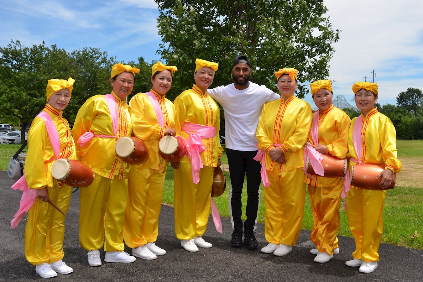 ![]() 图7:切斯特市副市长兼市议员摩根(William Morgan)与部份法轮功腰鼓队员合影。 |