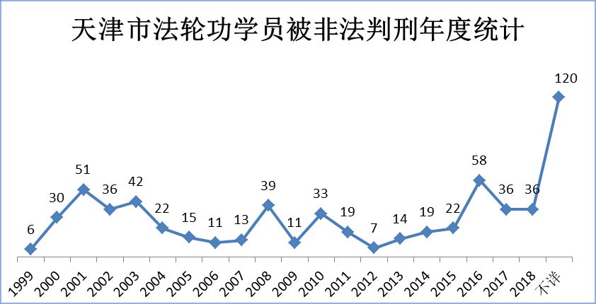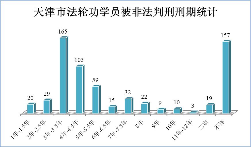 据明慧网不完全统计,天津市公检法系统蓄意错用《刑法三百条》,二十年来枉法诬判法轮功学员高达643人,最高刑期长达十二年,五年以上刑期的有150人,占比有刑期统计总数的29%。由于中共高压迫害下,很多被非法判刑投入监狱迫害的案例并没有曝光出来,所以以上统计数字远远低于实际情况。