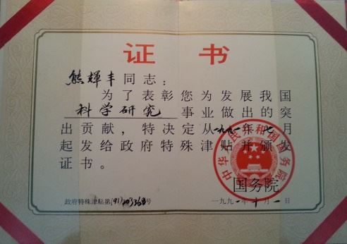 熊辉丰先生曾任航天部八三五八研究所副所长、研究员,与著名的火箭专家梁思礼先生同为中国宇航学会的第二、三届的理事,从一九九一年七月份开始享受政府特殊津贴,因其杰出成就而获得一九八五年度“国家科学技术进步三等奖”、一九九三年度“光华科技基金贰等奖”等多种奖项,在国内外享有很高的声誉。