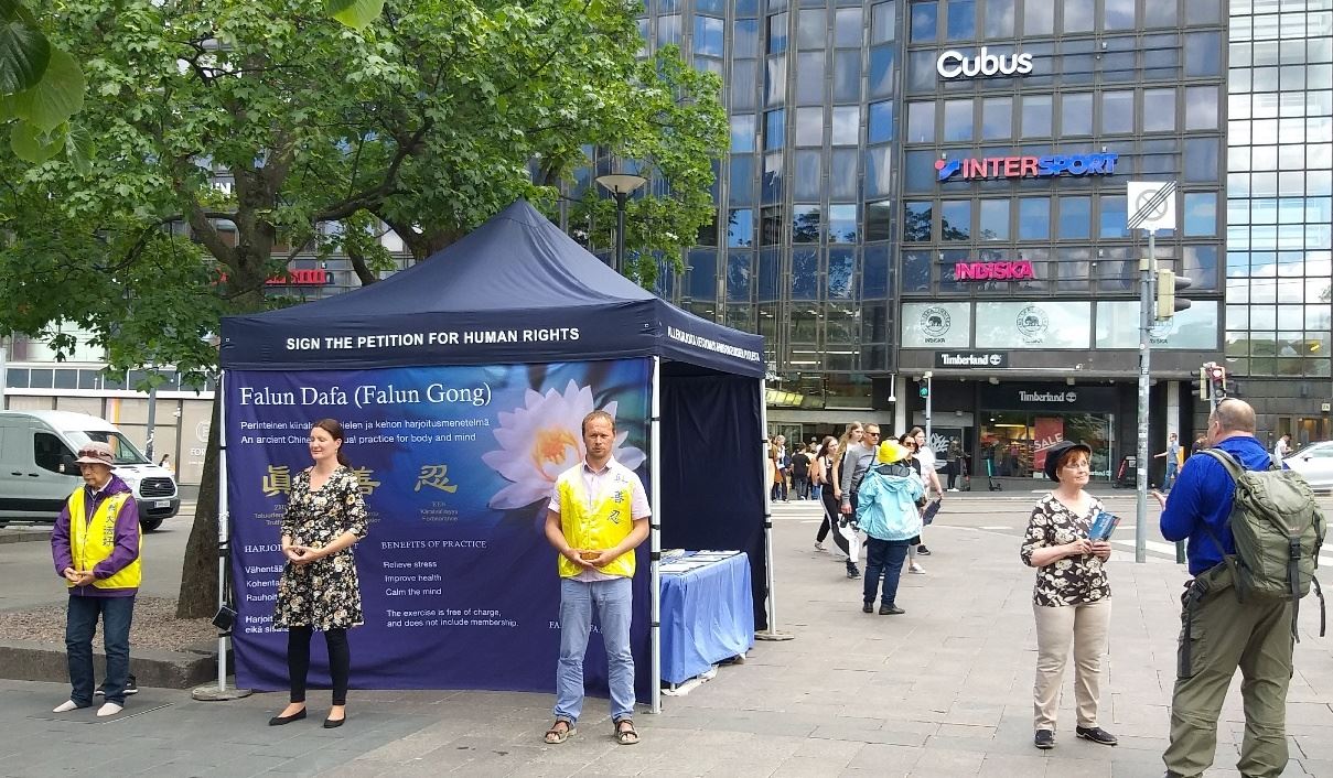 ![]() 图1:二零一九年七月十三日,芬兰法轮功学员在赫尔辛基市中心讲真相。 |