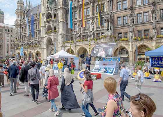 七月十九日和二十日,法轮功学员分别在慕尼黑玛琳广场和慕尼黑中领馆前举办了反迫害二十周年的活动,揭露中共对法轮功长达二十年的迫害。