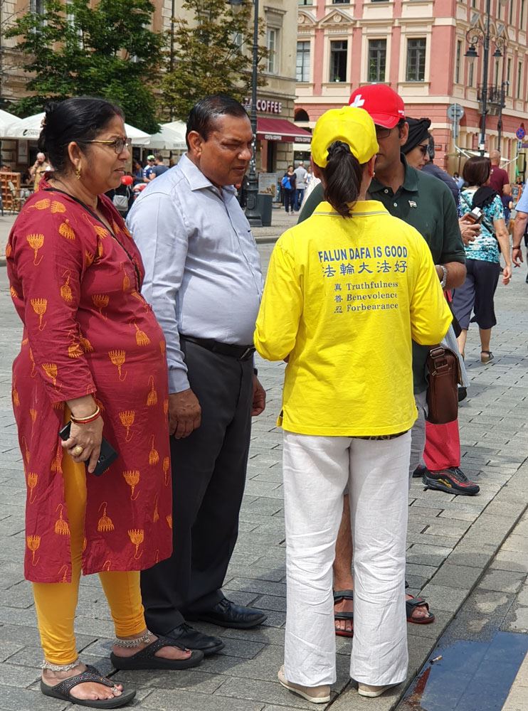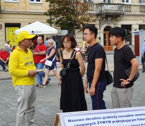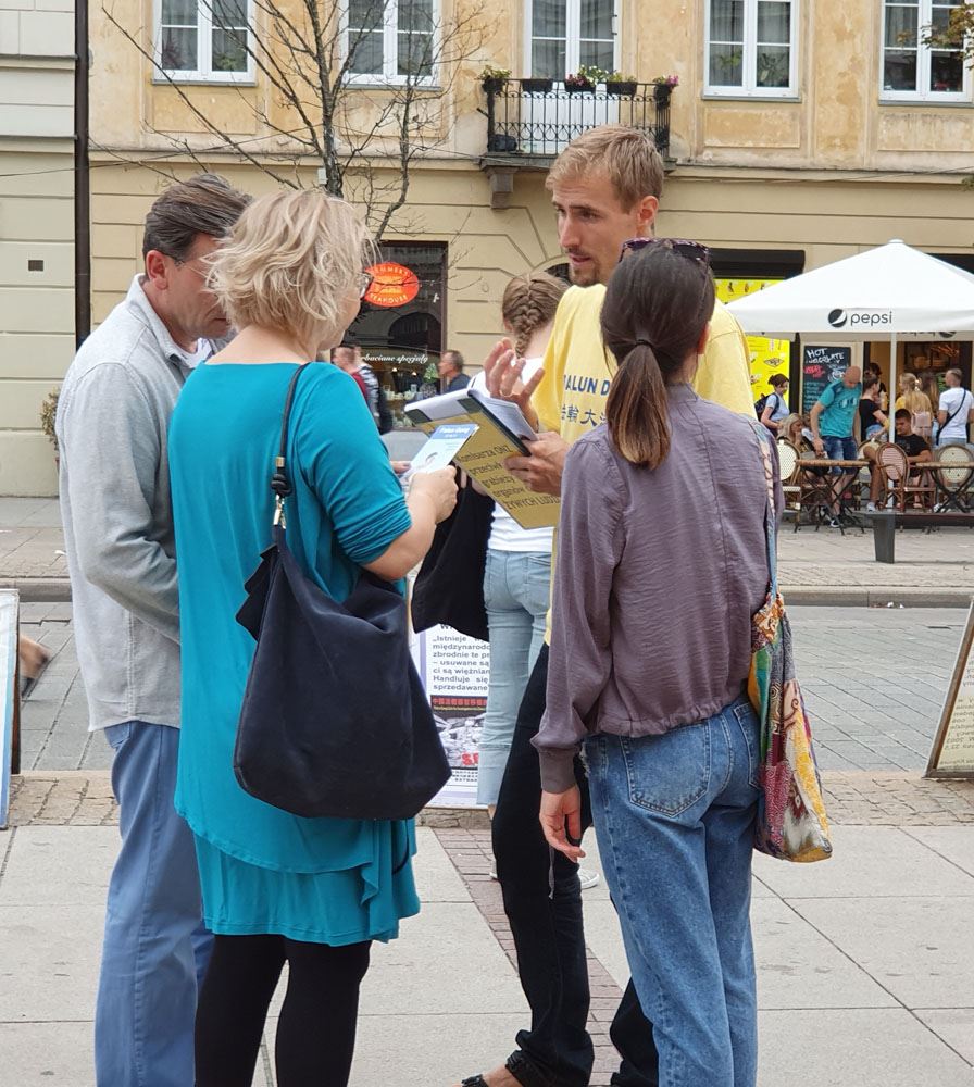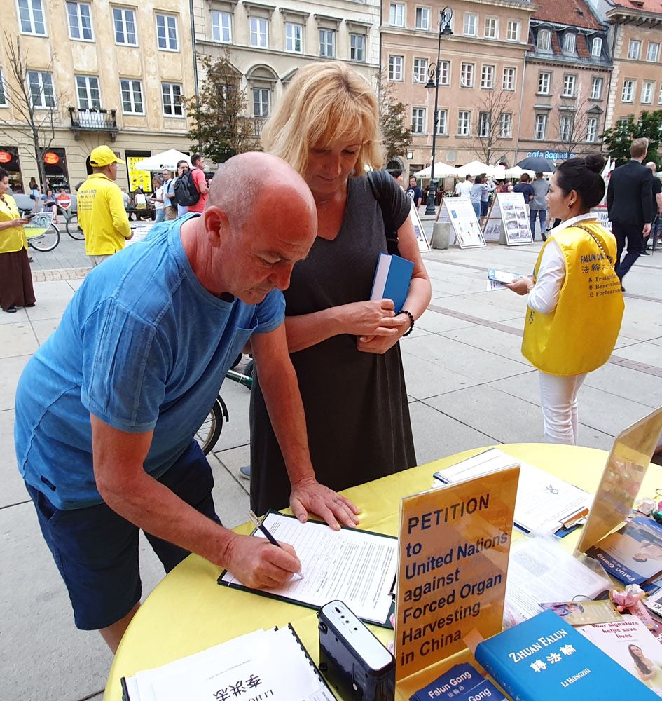 时值全球法轮功学员反中共迫害二十周年之际,波兰法轮功学员特别推出向波兰参、众两院院长及波兰总理的请愿书,呼吁波兰政府直面中共二十年来对法轮功学员的残酷迫害及大规模活摘器官的反人类罪,促法办元凶解体中共,为终止地球上前所未有的邪恶承担波兰政府应尽的道德责任。请愿书受到不同语言游客及波兰民众的积极响应,大家纷纷在请愿书上签名,支持法轮功反迫害,并为法轮功学员送上真诚的祝福。
