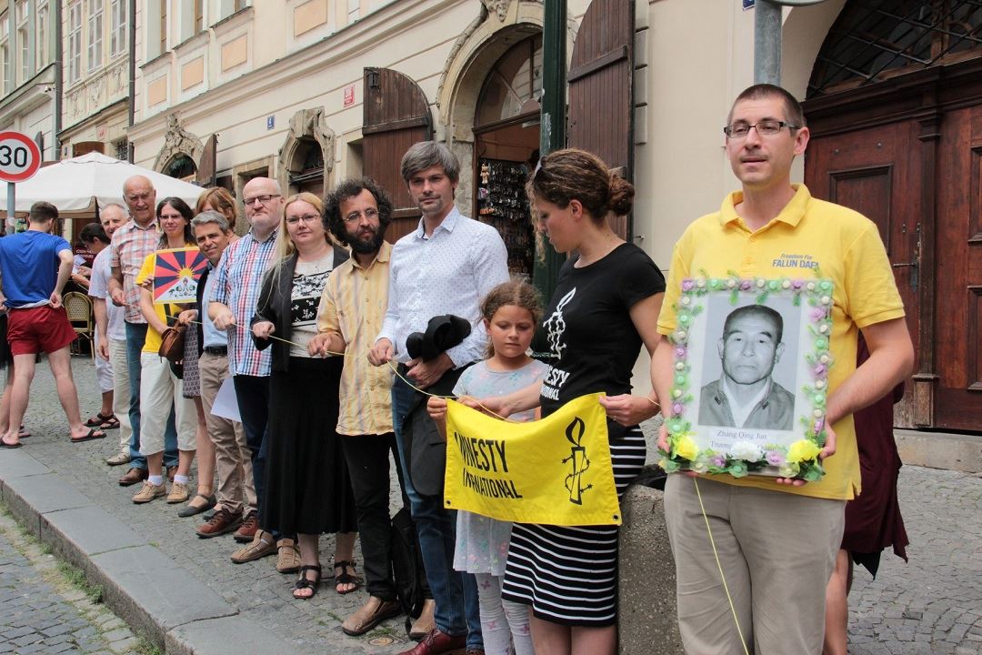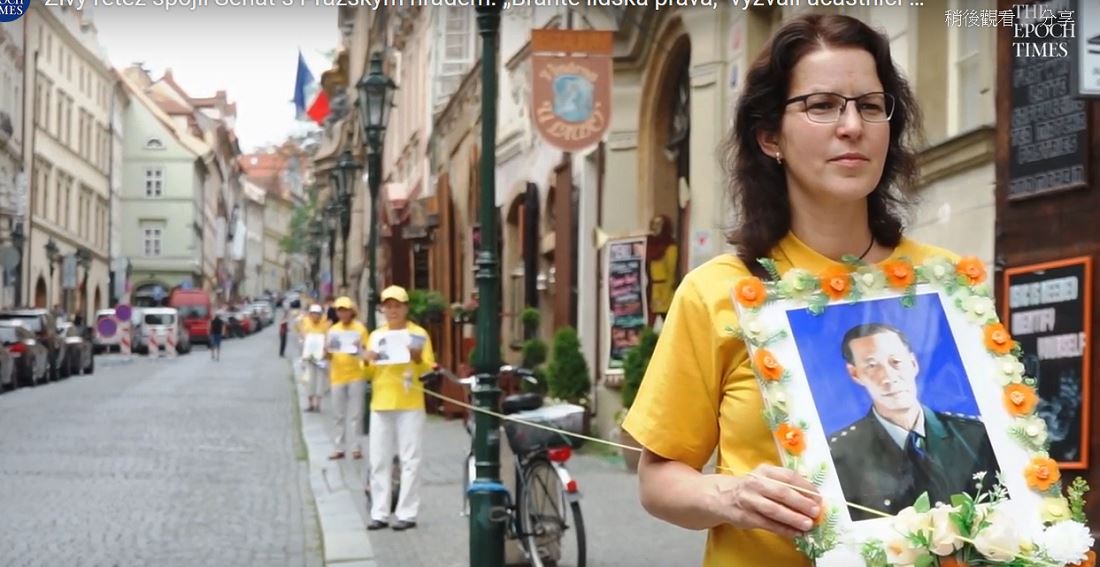 七月十九日,在小城广场(Malostranske namesti)集会,然后由法轮功学员组建了一道真相人链,从捷克共和国参议院开始直到布拉格城堡总统府,每隔2—3米之间就有一位法轮功学员手举一张被中共迫害致死的法轮功学员的遗像,并向过往行人说明,因为他们拒绝放弃自己的价值观和信仰而被中共迫害致死的。学员沿路派发真相资料,揭露中共残暴和血腥的反人类罪,并通过这条人链,将捷克参议院第131/2019号决议和“伦敦法庭”对中共的判决结果送交给总统办公室。敦请捷克共和国总统和政府,呼吁中国政府停止迫害法轮功,释放被非法关押的法轮功学员。