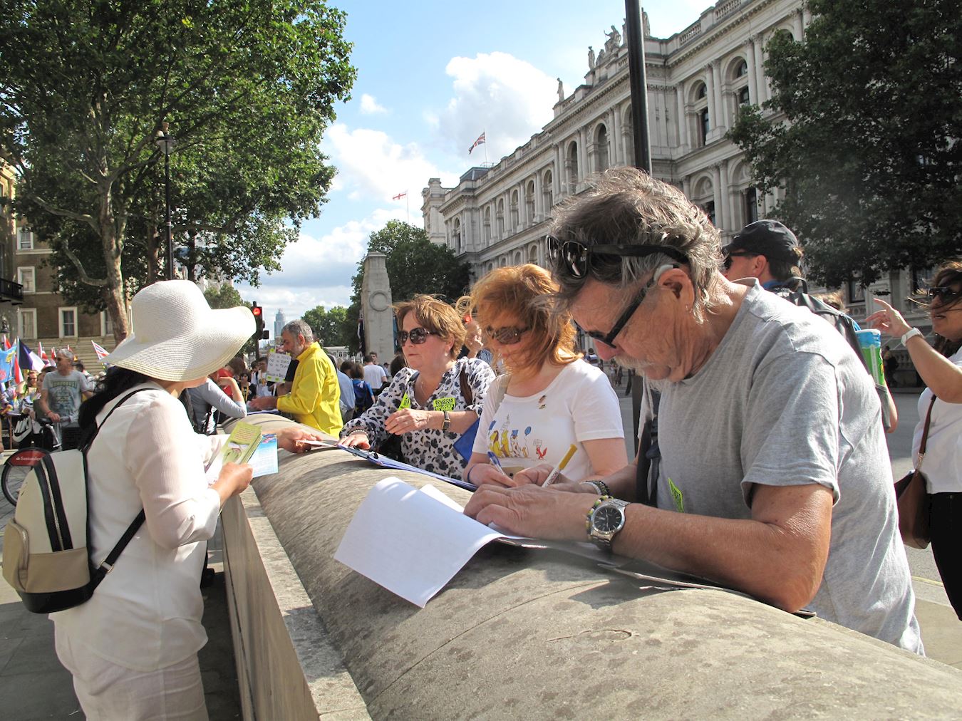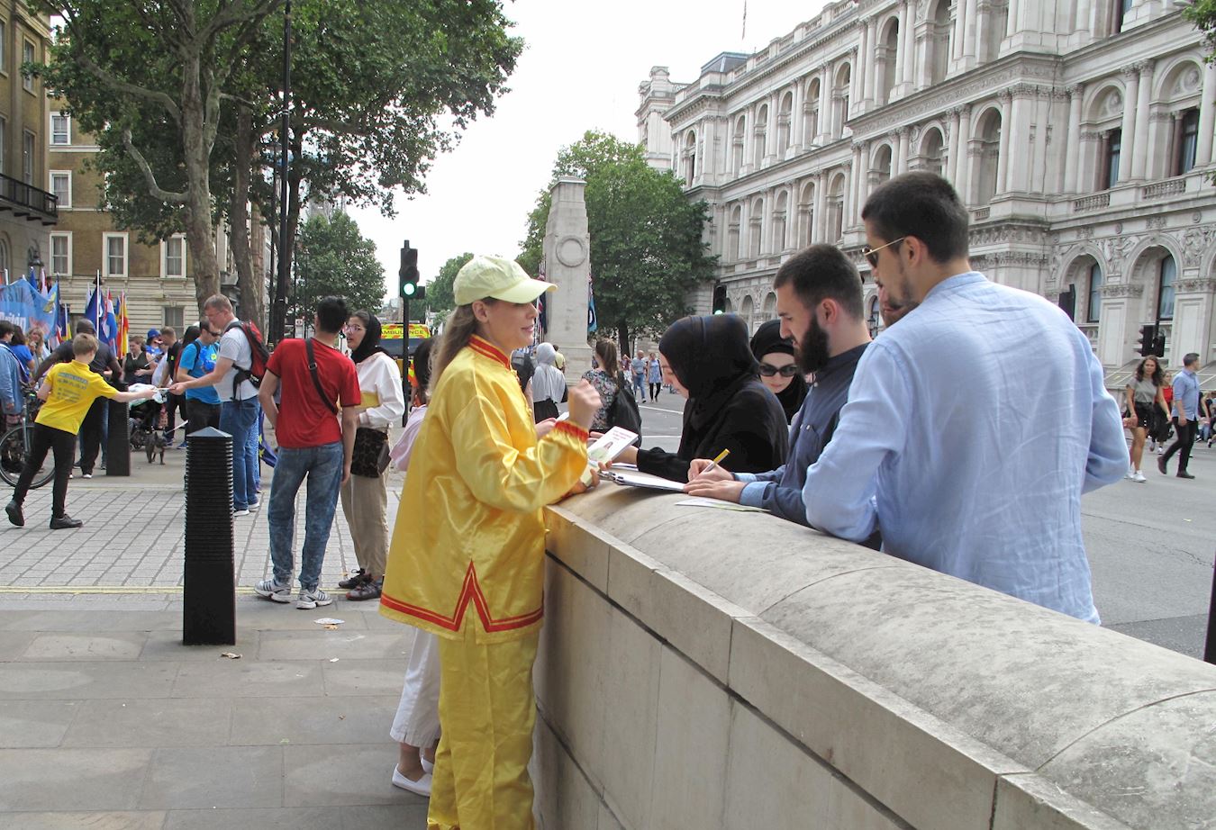 ![]() 图10:二零一九年七月二十日,在唐宁街10号首相府前,民众在了解真相后签名支持法轮功反迫害。 |