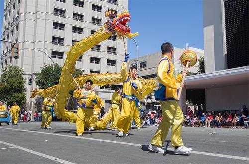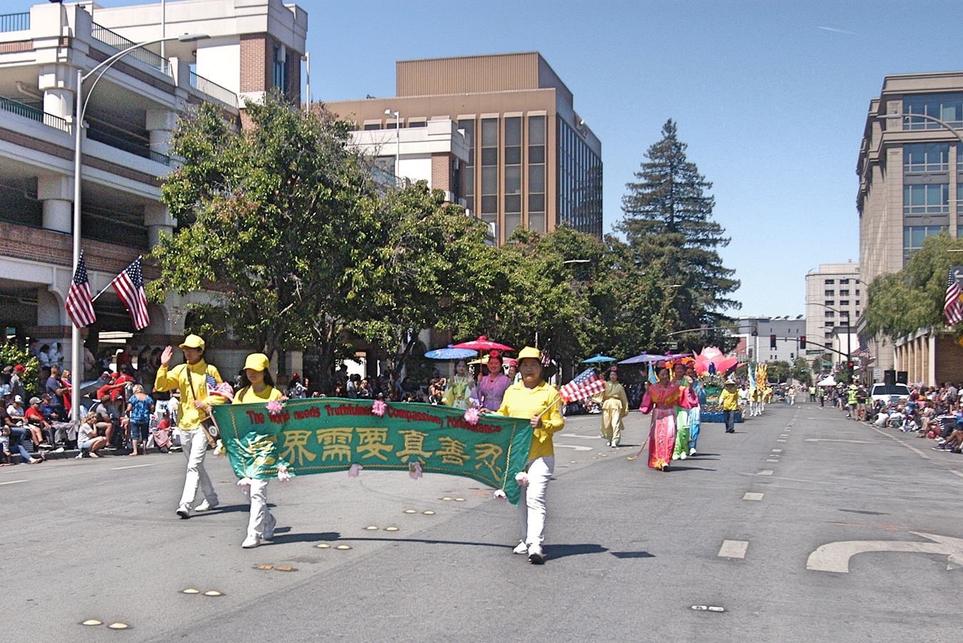 当天的游行主办方在游行队伍沿途设立了多个演讲台,介绍游行队伍。乔治·迪瓦恩(George Devine)是主持人之一,他说自己是第三年主持这个游行了。他说:在这个日子,人们都大家都携家带口出来,一起来庆祝这个好天气,庆祝这个国家,也庆祝家庭。他表示他很喜欢法轮功这个队伍。