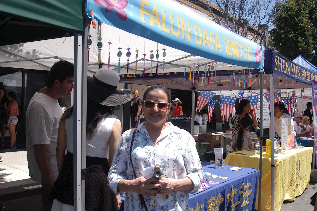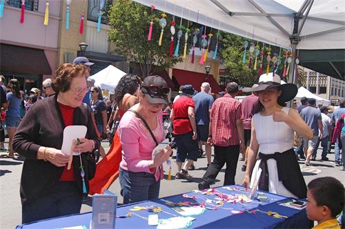 ![]() 图12:旧金山湾区一家非营利组织的策划协调人莫妮卡(Monica)表示看到法轮功很高兴。 |