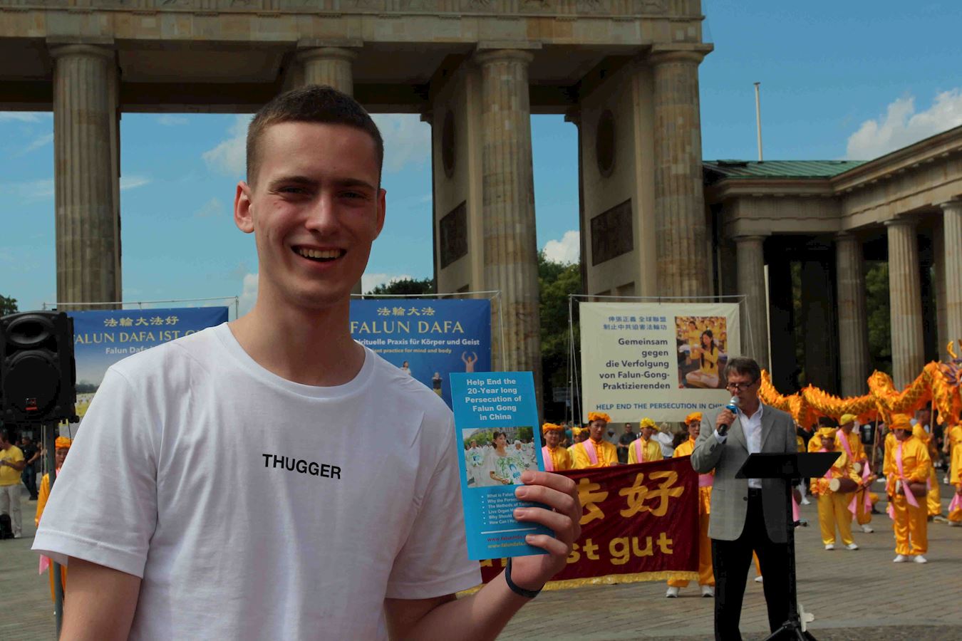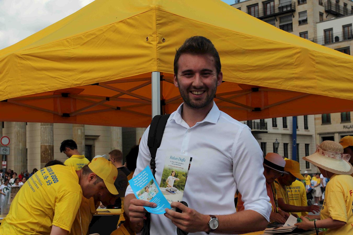 文森特(Vincent Locquet )是一位来柏林旅游的比利时研究生。他说:“我签名的目的是为了让政府能够更多的来关注这一问题,我们当然应该制止迫害,这是毫无疑问的。我觉得法轮功学员通过这样的方式来让人关注,非常有智慧,他们也的确引起了很多人的注意。”