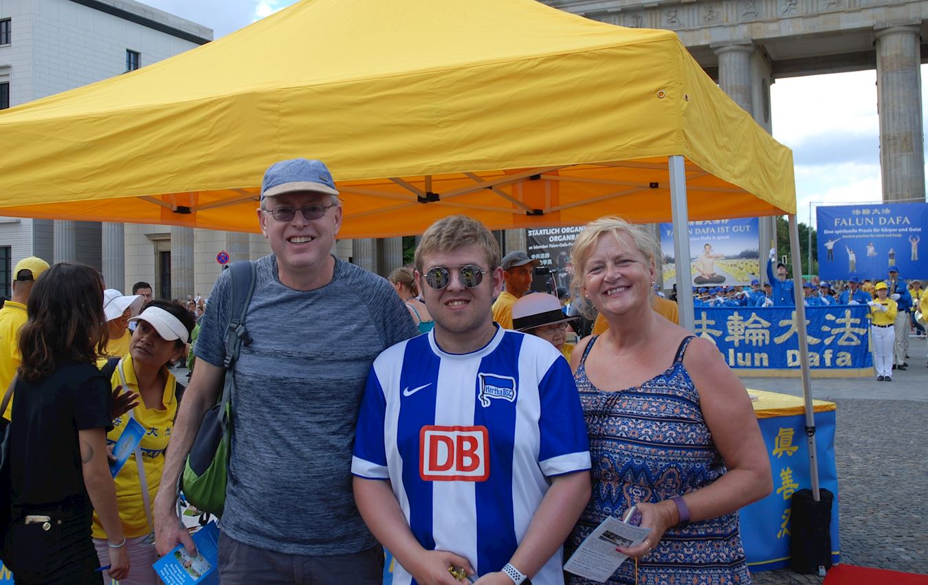 展位前来自曼切斯特的一家三口都在征签簿上签了名。父亲布里吉伍德(Bridgwood)表示:“中共对法轮功的迫害完全是错误的,他们(法轮功学员)应该有信仰自由。”他鼓励法轮功学员坚持不懈,因为“这样的活动的确对中共停止迫害能起到施压作用,能够改变他们的同伴在中国的待遇。”