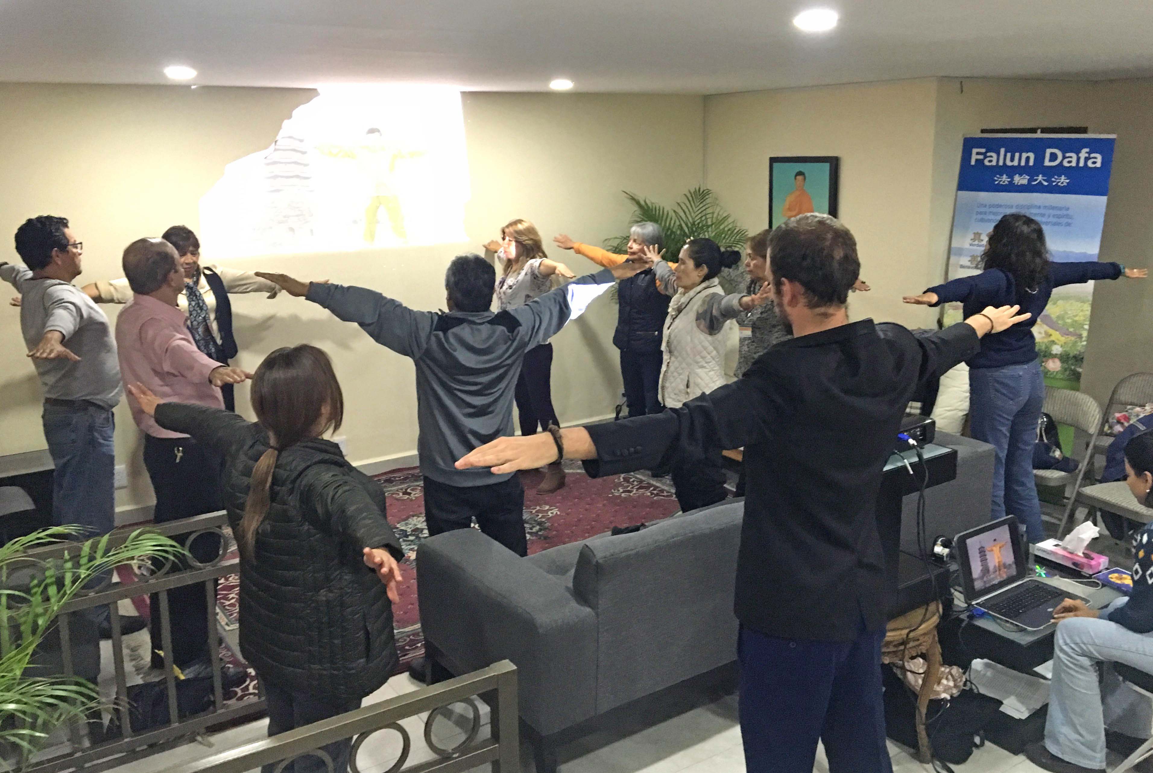 【明慧网二零一九年八月二十七日】墨西哥法轮功学员于今年五月在普埃布拉(Puebla)举办九天班后,又于七月底在首都墨西哥城举办了九天班。参加九天班的新学员观看了李洪志师父的讲法录像,并学炼法轮功五套功法,他们表示,在身心方面获益匪浅。