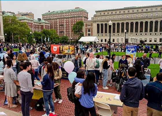 二零一九年九月六日,美国哥伦比亚大学举办一年一度的社团博览会,哥伦比亚大学法轮大法社也参与展览,向学校的师生传递修炼大法的美好。